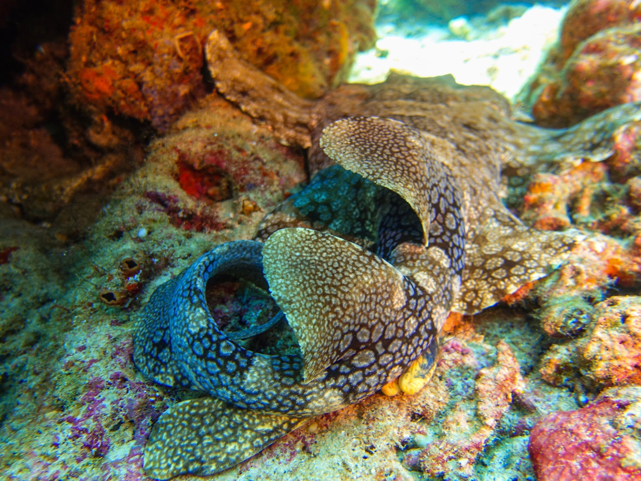 인도네시아의 산호초에서만 볼 수 있는 Wobbegong shark의 증명사진