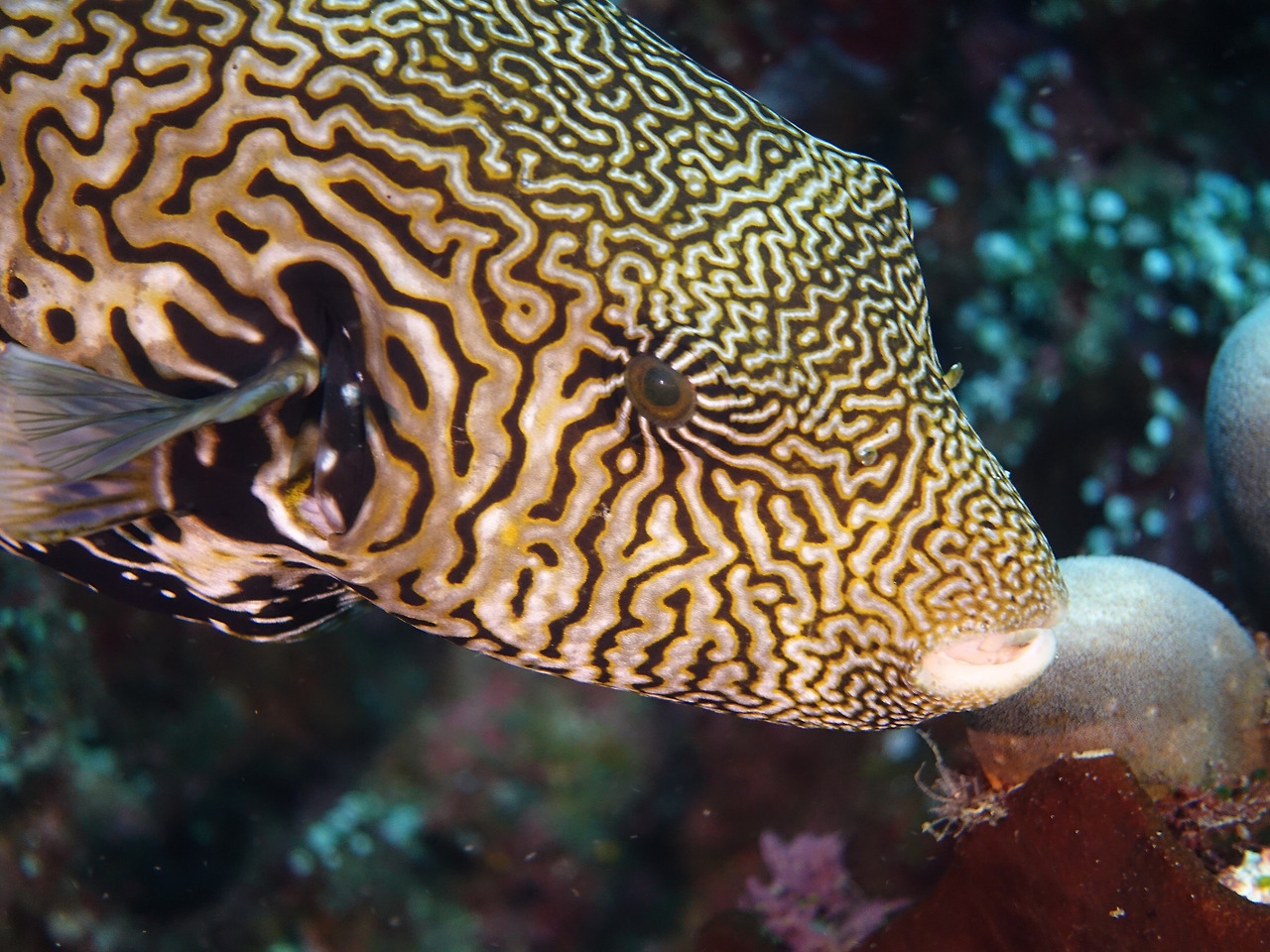 Map pufferfish의 귀여운 얼굴. 하지만 저 조그만 입에 걸리면 남아나는 게 없다지.