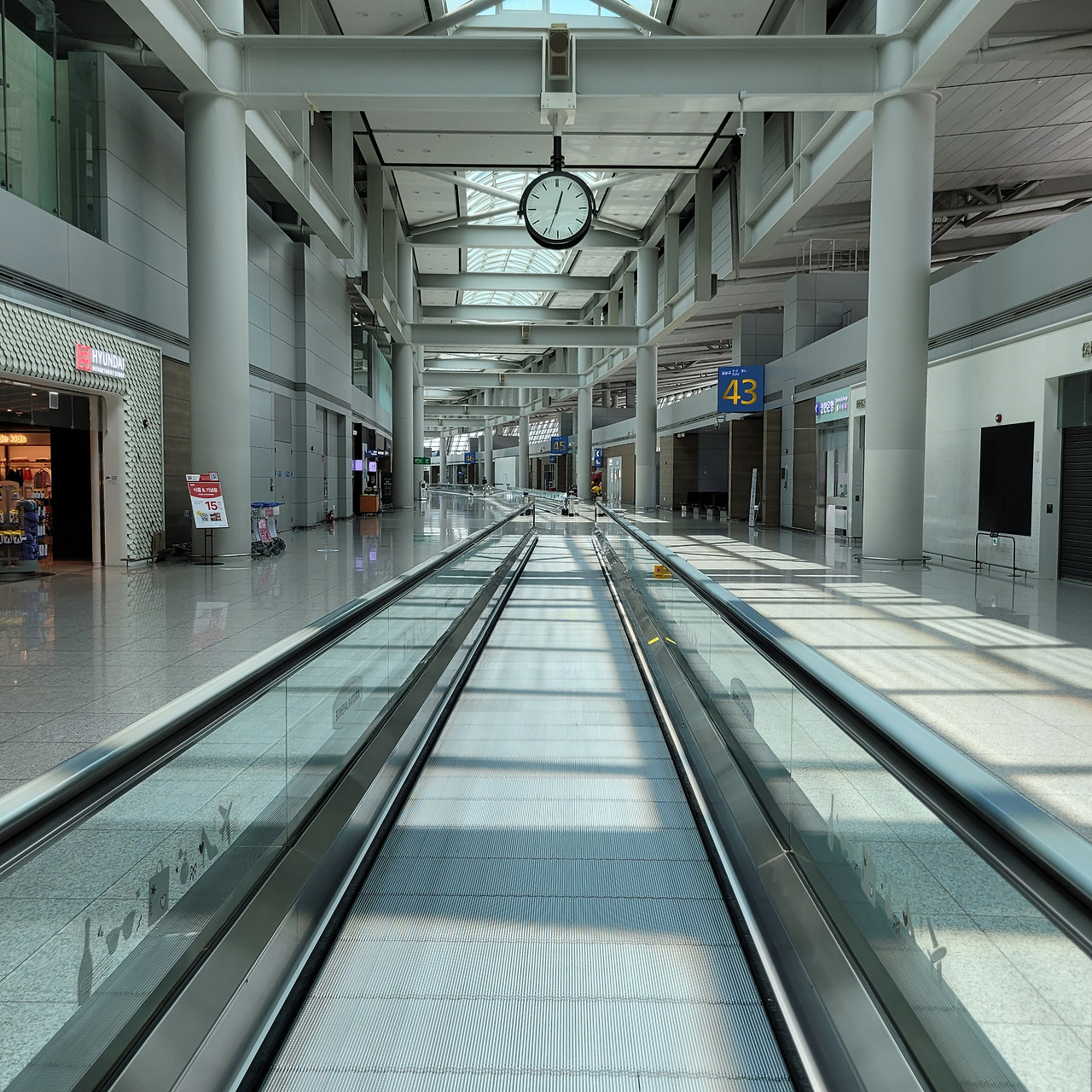 이렇게 한산한 면세구역. 문제는 면세점들조차도 문을 열지 않은 곳이 많았던...