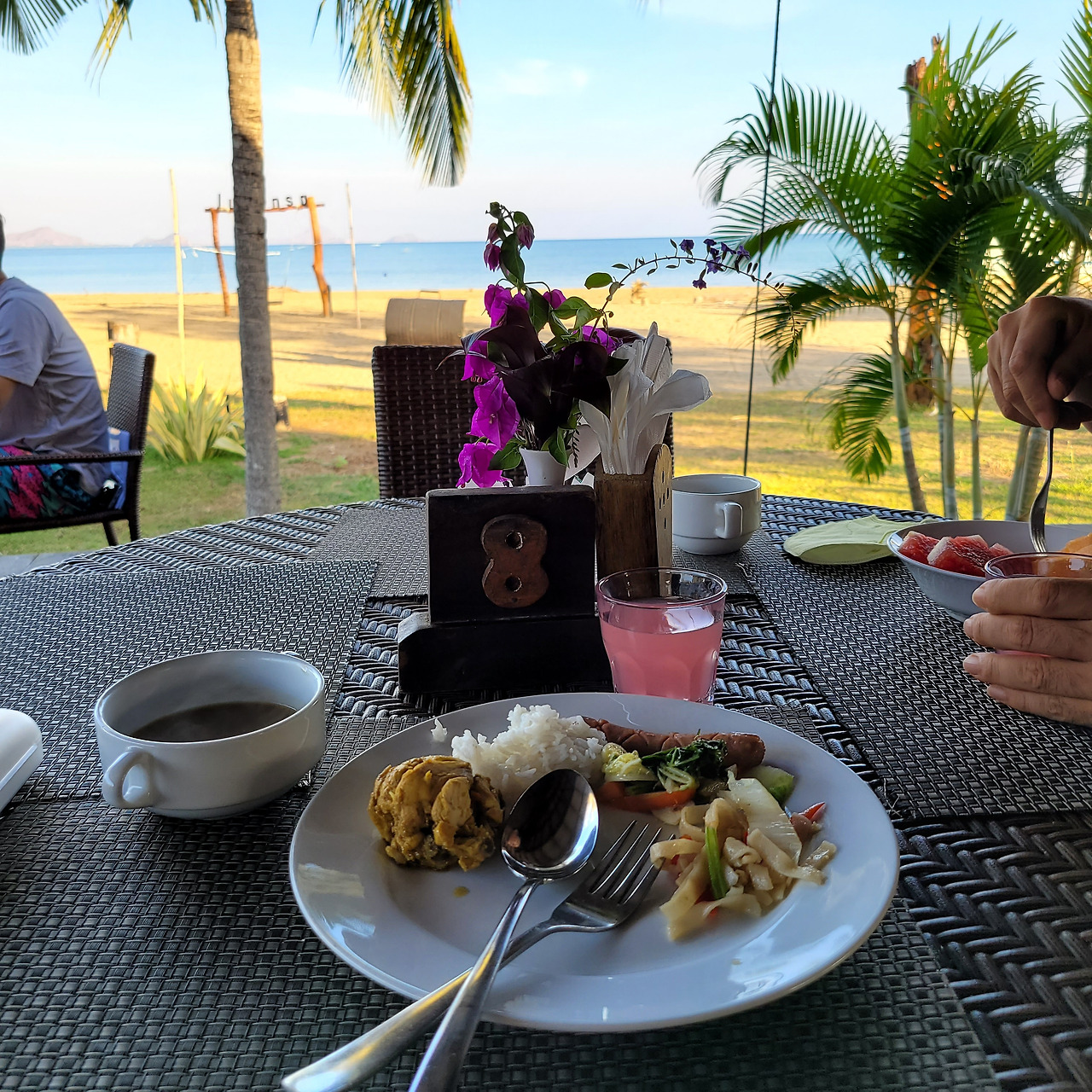 야외 테라스에 앉아 맥주와 음료를 시켜놓고 한적하게 있으니 이제야 휴양을 왔다는 것이 실감 난다. 바다 풍경이 그~렇게까지... 근사하지는 않아서 그건 좀 아쉬웠다.