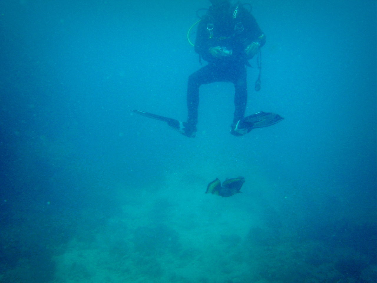 그때의 인상이 너무나 강렬했던 데다가, 이후로 다이빙 여행을 갈 때도 인솔 강사님이 항상 이 녀석을 만나면 조심해야 한대서 깡패 같은 이미지는 깊이 각인되어 있었다. 가끔씩 물속에서 마주치면 옆으로 슬슬 피해 다녀야 했고, 어쩌다가는 둥지 주변에서 어슬렁대는 다른 물고기들을 쉴 새 없이 쫓아내느라 바쁜 모습도 봐 왔는데, 첫 만남에서와 같은 그런 결정적인 장면은 이후로는 볼 수 없어서 아쉬움이 없지 않다는 것이 이 녀석에 대한 모순적인 감정이다.