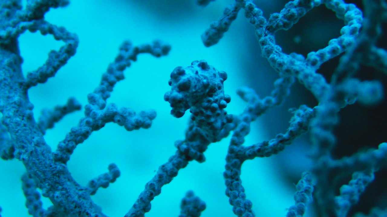 이윽고, 다리우스의 긴 손가락 끝의 하얀 손톱이 우리의 눈을 산호의 어느 한 지점으로 인도했다. 그 끝에는 분명 무언가가, 피그미 해마가 있을 것이 분명했다. 음? 그런데 그렇게 시선이 옮겨간 곳에는 다른 산호와 다를 바가 없었고, 특별한 것이 보이지 않았다. 우린 다시 다리우스의 눈을 쳐다보았고, 다리우스가 무슨 말을 하려는 건지 의문을 가졌다. 다리우스는 자세를 가다듬었지만 손 끝은 여전히 같은 곳을 가리키고 있었다.