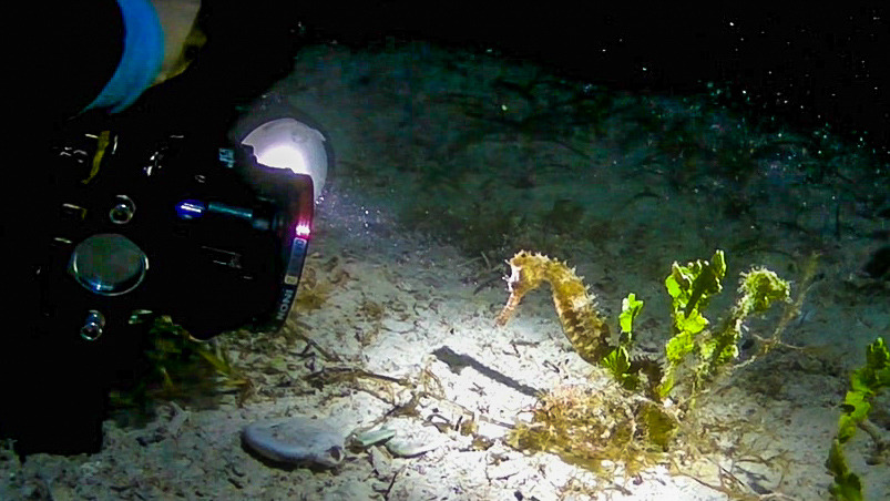하지만 섬의 정취는 나쁘지 않은 정도만 해 줘도 충분할 것 같다. 말라파스쿠아의 진가는 바다에서 모두 뽑을 수 있을 테니까. 이미 환도상어를 본 것으로 기분이 좋았다. 그런데 나이트 다이빙은 더 큰 놀라움을 주었다. 이때까지 해 본 나이트 다이빙이 많지는 않아도, 들어갈 때마다 비슷한 느낌을 받았는지 조금씩 익숙해지던 차였다. 그래도 나이트 다이빙을 갈 때는 언제나 더 긴장되는 것 같다. 아마도 이런 짜릿한 긴장이 나이트 다이빙을 더욱 매력적으로 느끼게 만드는 것이 아닐까.