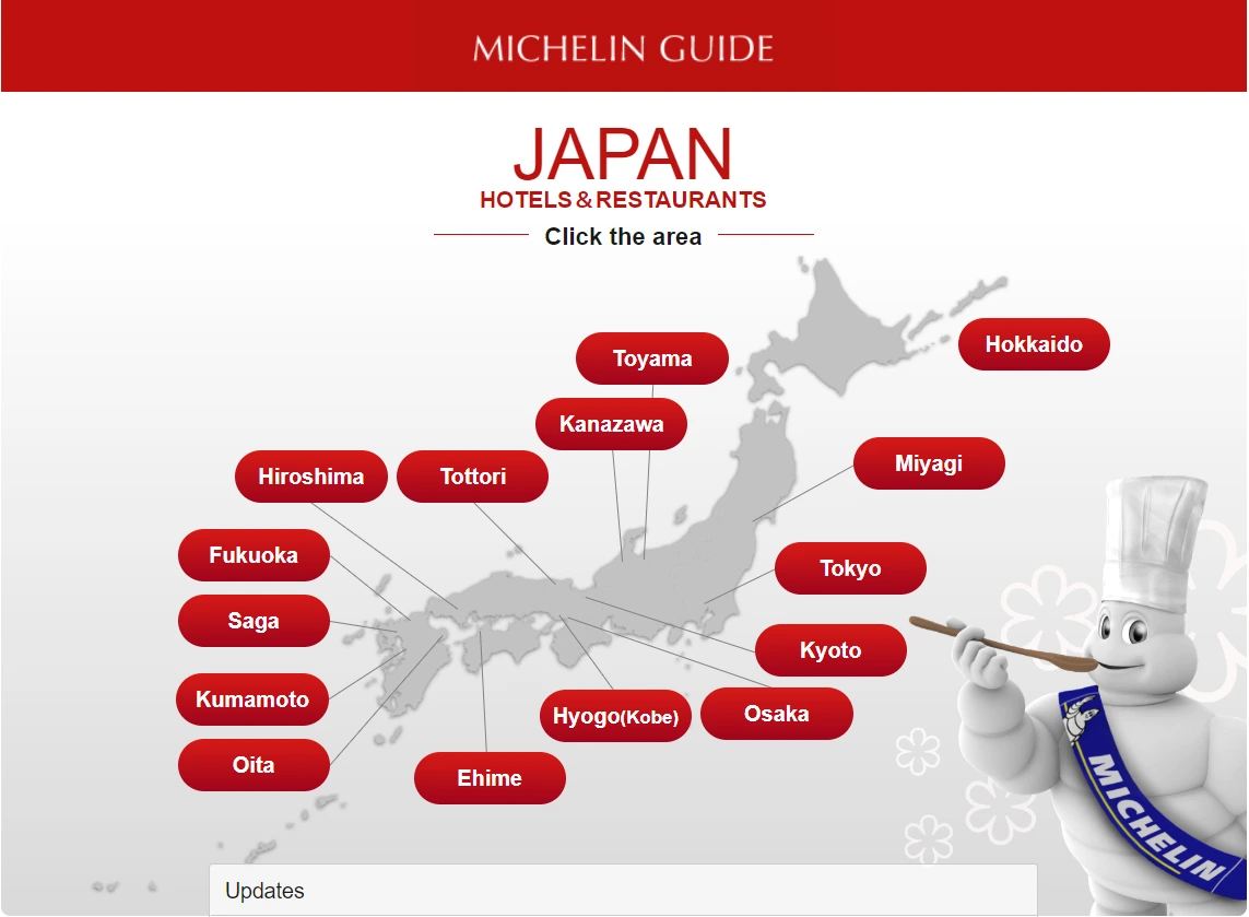 미슐랭 가이드 홈페이지를 통해 들어간 일본 안내 사이트. 한글로 검색하면 안 되고 영문으로 검색해서 들어가야 한다.