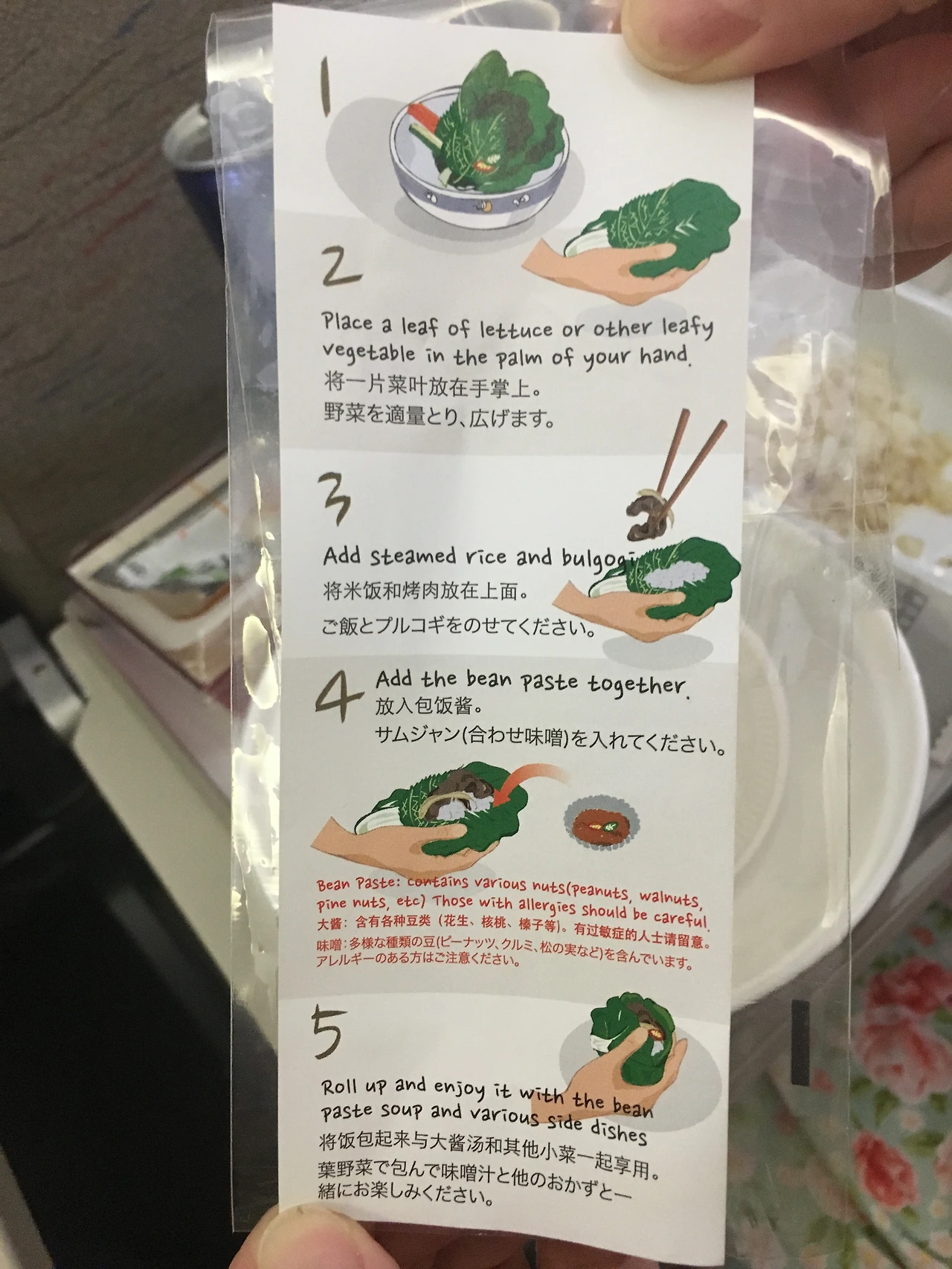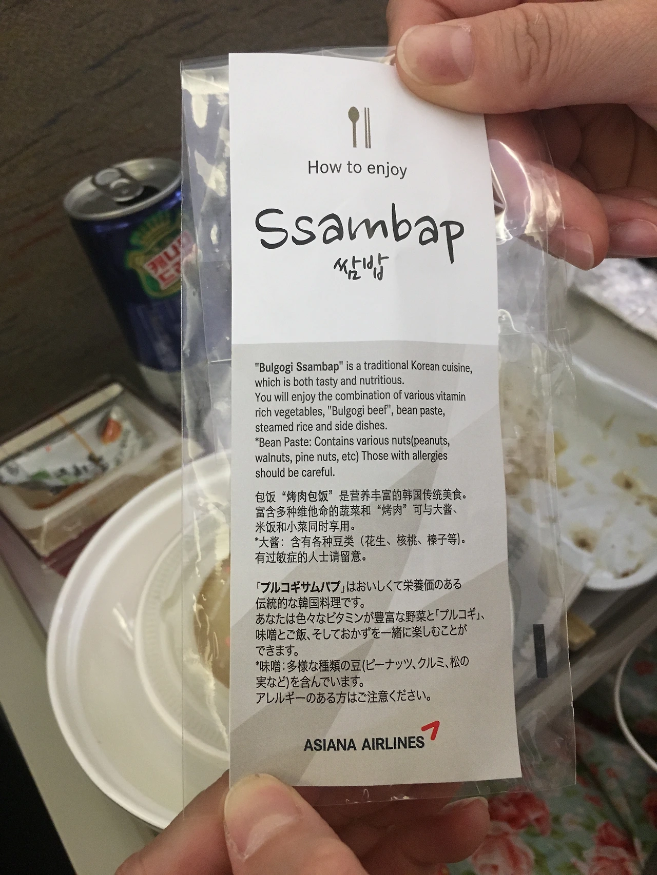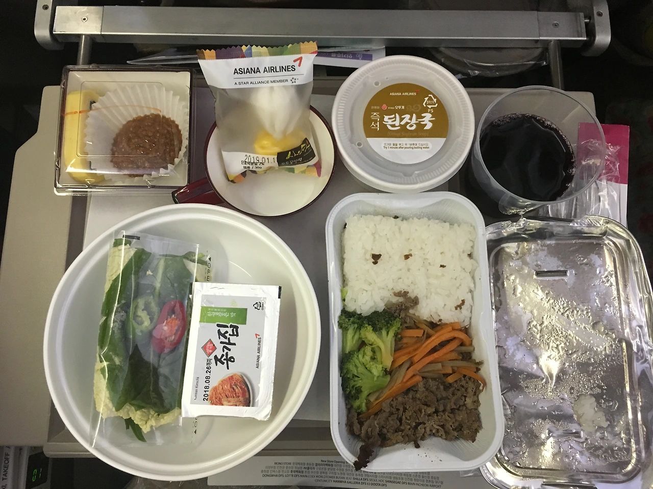 비행기는 두 시간이나 활주로에서 움직이지 않았다. 하지만 여행이 시작되는 길이라 조금은 관대해진다. 그러고 벌써 밥이 나오네? 어허... 새로운 시도가 언제나 환영받는 것은 아닐 텐데, 기내식이 쌈밥이라니?! 그럭저럭 괜찮은 맛이라 지연 출발의 불만도 좀 사라졌다.