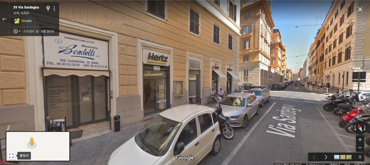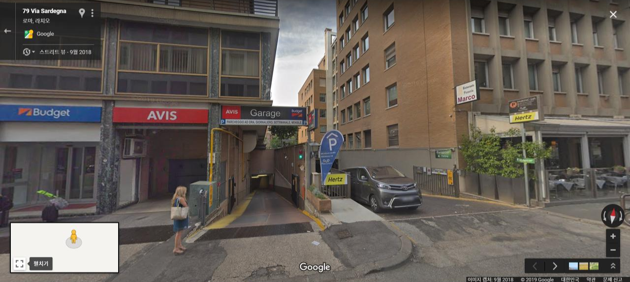 흠. 그래서 나왔는데... 뭐가 보이는 게 없는데? 분명 금방 있을 거랬는데. 뭐가 보여야 하는 거지? 그렇게 우리 네 명이 두리번거리고 있으니 지나가던 사람이(우리 같은 렌트카 손님인지도 모르겠고) 우리가 말하지도 않았는데 렌트카 차고는 저기에 있다며 알려줬다. 역시나 간판이 작은 데다 사람이 내려갈만한 길을 찾을 수가 없어 차가 들어가는 램프를 따라 지하차고로 걸어 내려갔다. 그래, 여긴 이탈리아니까...