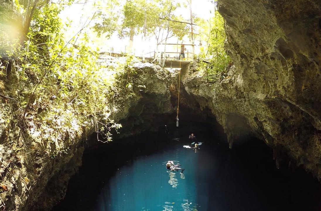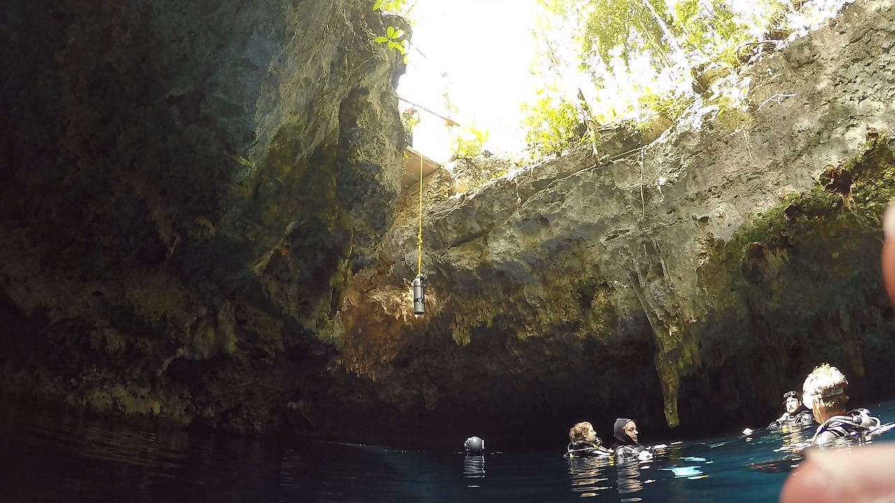El Pit은 입구가 지면보다 낮은 곳에 있어서 다이버도 계단을 걸어 내려가야 하지만, 장비를 들고 내려가는 대신 줄에 걸어 올리고 내린다. 들고 내려 가는 것보다는 훨씬 편하네. 날씨도 좋은 데다 장비를 올리고 내리는 모습과 잔잔한 세노테에 하릴없이 가만히 떠서 쉬고 있는 다이버들의 모습을 보니 세상 모든 평온함과 고요함을 여기에 다 모아 둔 것 같다.