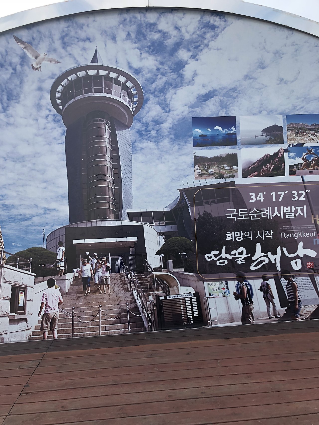 “아니, 땅끝마을 해남! 목포 밑에 있는데.”