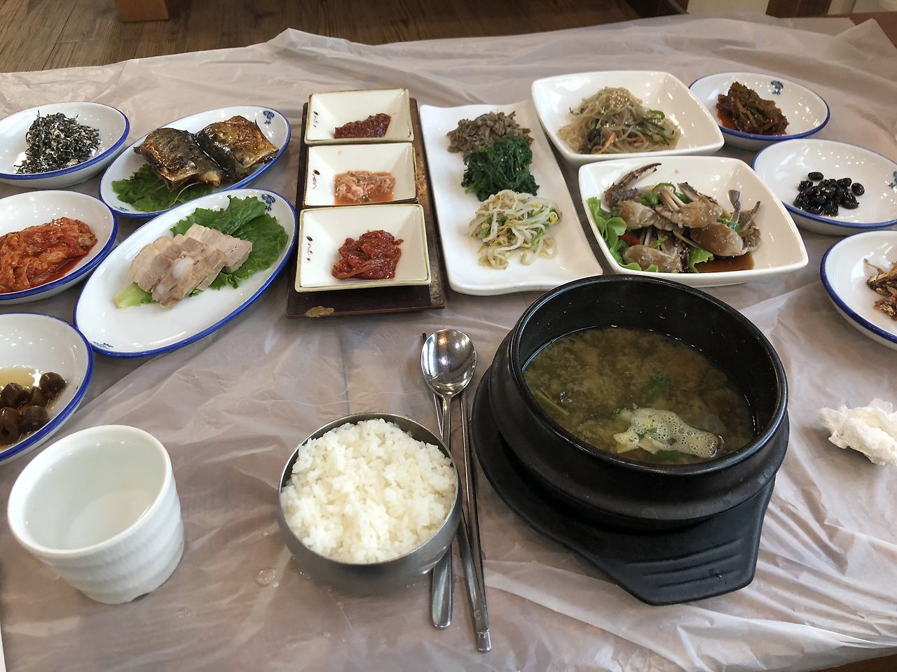 처음 보는 녀석들도 있었다. 검고 자장면 줄기같이 보이는 톳과 노오란 계란을 같이 볶은 음식. 처음 보는 젓갈인데 맛을 보니 생선을 갈고 비린내를 잡기 위해 된장 간을 쌔게 한 음식. 시금치보다 좀 더 큼직하고 입안을 거칠게 맴도는 깻잎 같은 식감을 가진 나물에 들깨가루를 버무려 고소한 내가 나는 음식.