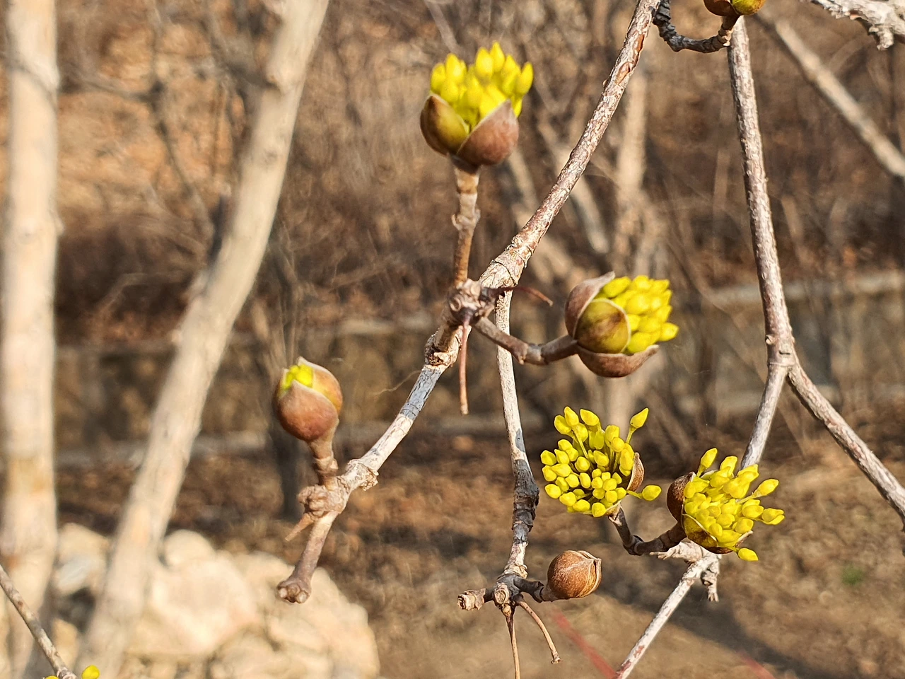 "그래 네가 제일 잘났다! 너마저 없었다면 어쨌을까. 산수유야. 고마워~"