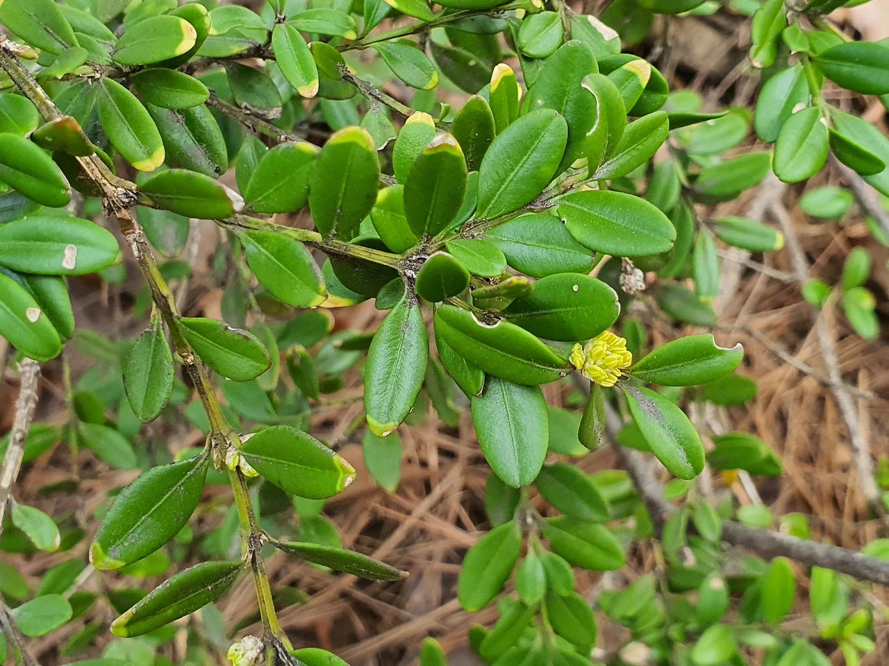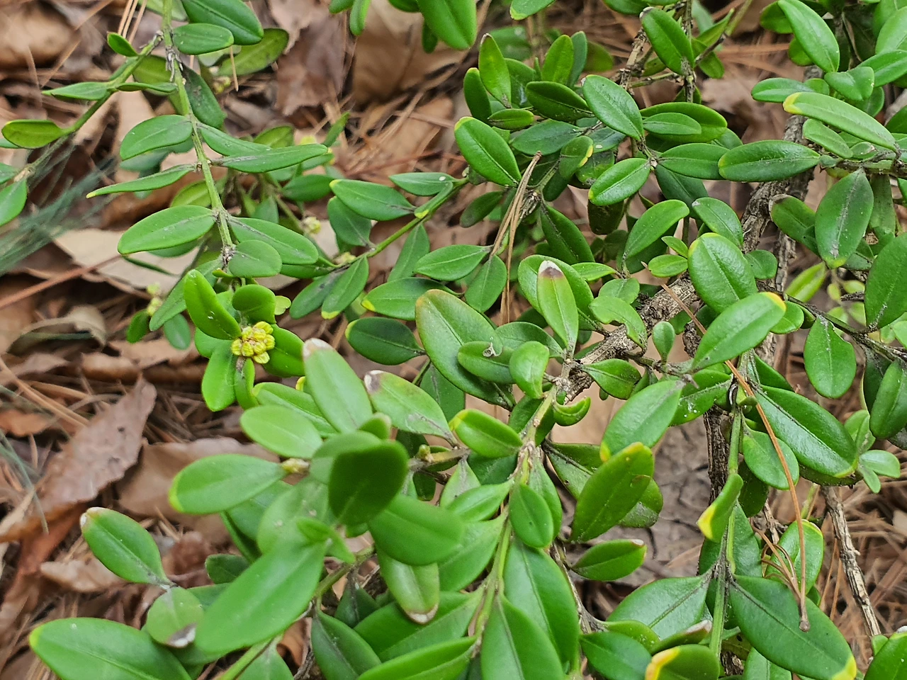 여전히 제 눈은 산속을 헤매고 기웃거립니다. 주말쯤 다시 와야겠네 생각하며 돌아오는 길에 회양목이 꽃을 매달고 있는 걸 발견합니다. 도시에선 경계목으로 많이 쓰이는 회양목이 산길에선 자유로운 모습으로 있어 편안해 보입니다.