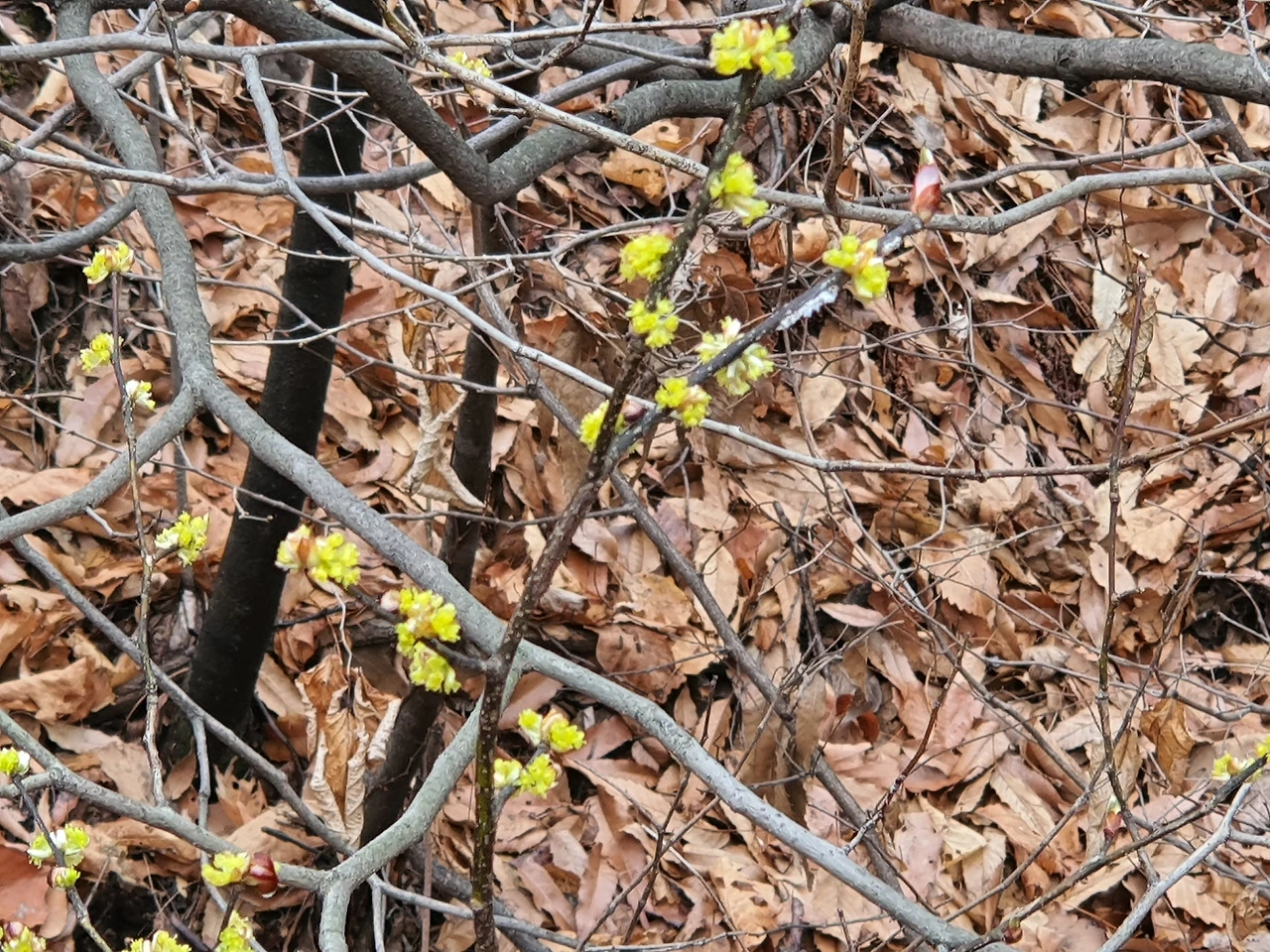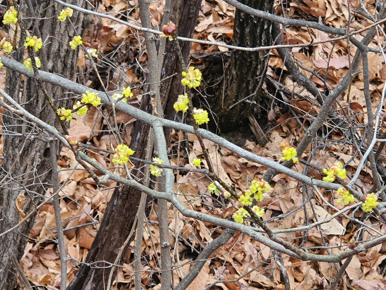 만개한 매실나무 꽃 사진을 찰칵! 찰칵! 저쪽에서 노란 웃음 방울방울 머금고 손짓하는 이 있어 다가가니 생강나무가 반긴다. 귀한 생강나무 꽃을 보니 이쪽으로 오길 잘했다면서 가까이 다가가려 하니 길이 없다. 멀리서 발걸음 옮겨 줌으로 당겨 생강나무 꽃님도 찰칵! 하고 나니 산 저 쪽에 봄비 머금어 촉촉해진 얼굴로 바라보는 진달래 여럿이 서 있는 것이 보인다.