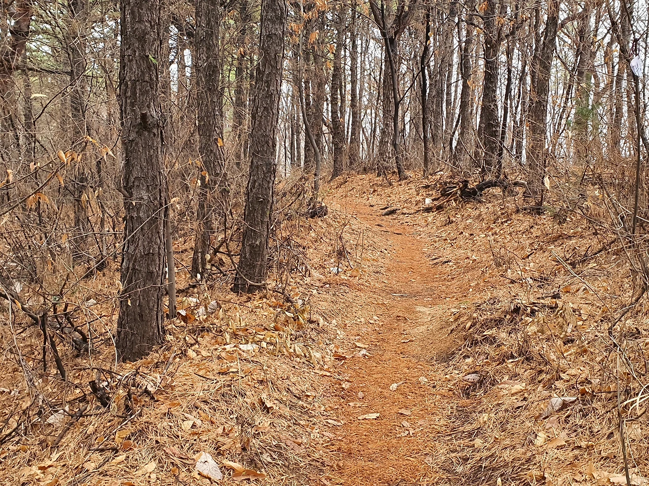 이리 둘레 저리 둘레 방향을 가늠하다 뻗은 나뭇가지 피해 가며 오락가락, 드디어 오솔길을 찾았다.