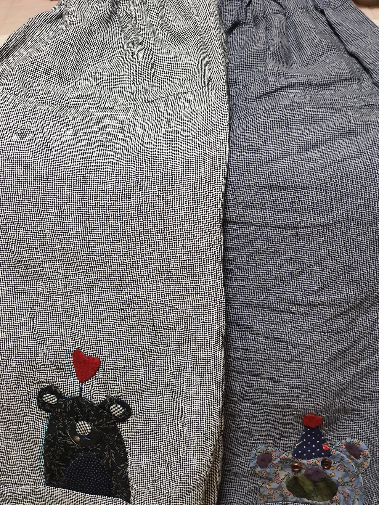 몇 주 전에도 디자인이 귀여운 여름 바지를 만들자고 해서 함께 만들었다. 친구의 작업실에서 재단을 해오고 나면 집에서 틈틈이 시간 날 때마다 재봉해서 완성할 수 있었다. 디자인이 입었을 때 아주 편안한 베기 스타일이어서 바지 왼쪽 아래에는 귀여운 곰돌이 아플리케 작업까지 해서 완성을 했던 터였다.컬러만 다르게 두 벌 만들었으니 지금부터 초가을까지 번갈아 외출 시에 입으면 될 것 같다.