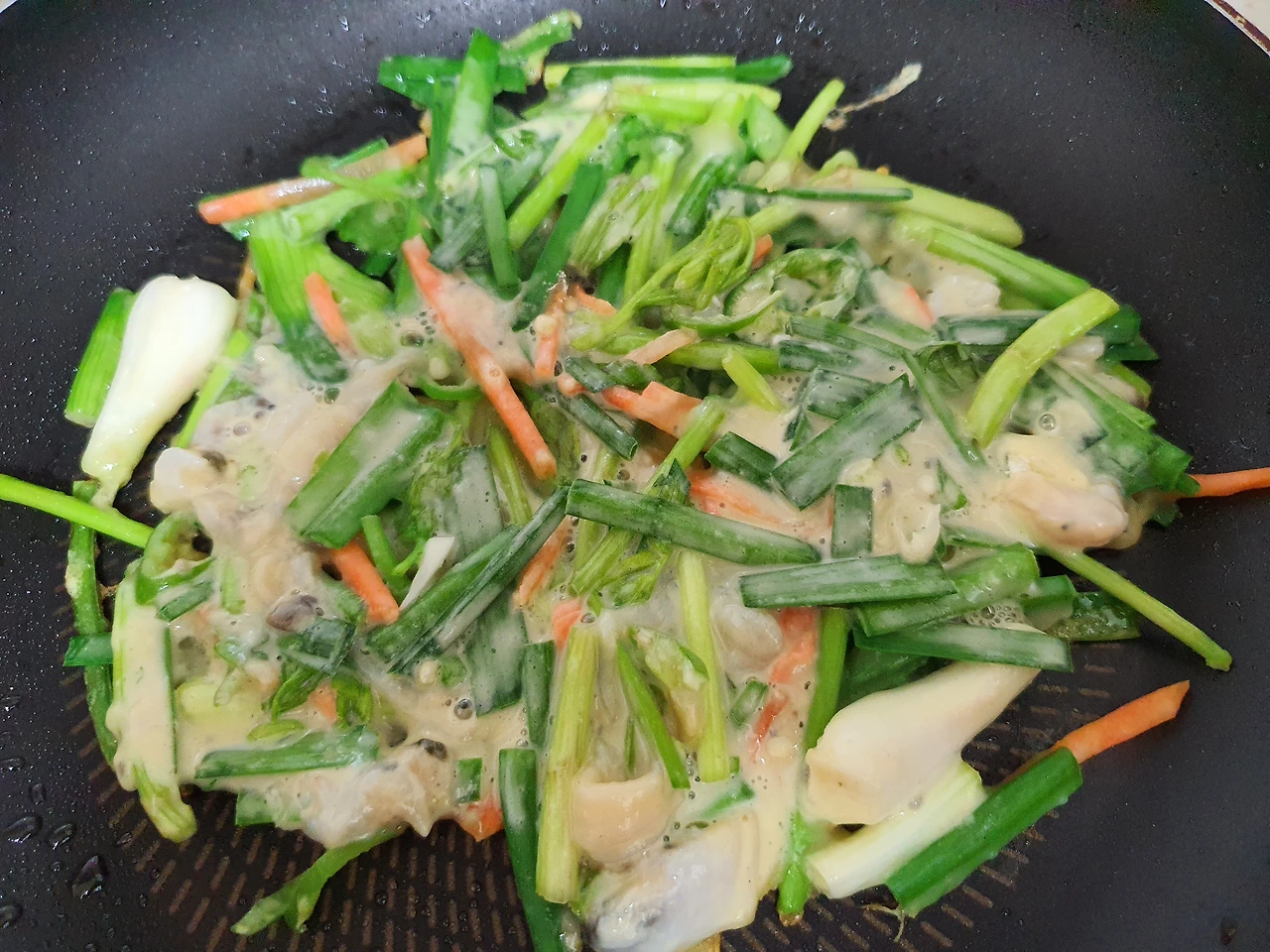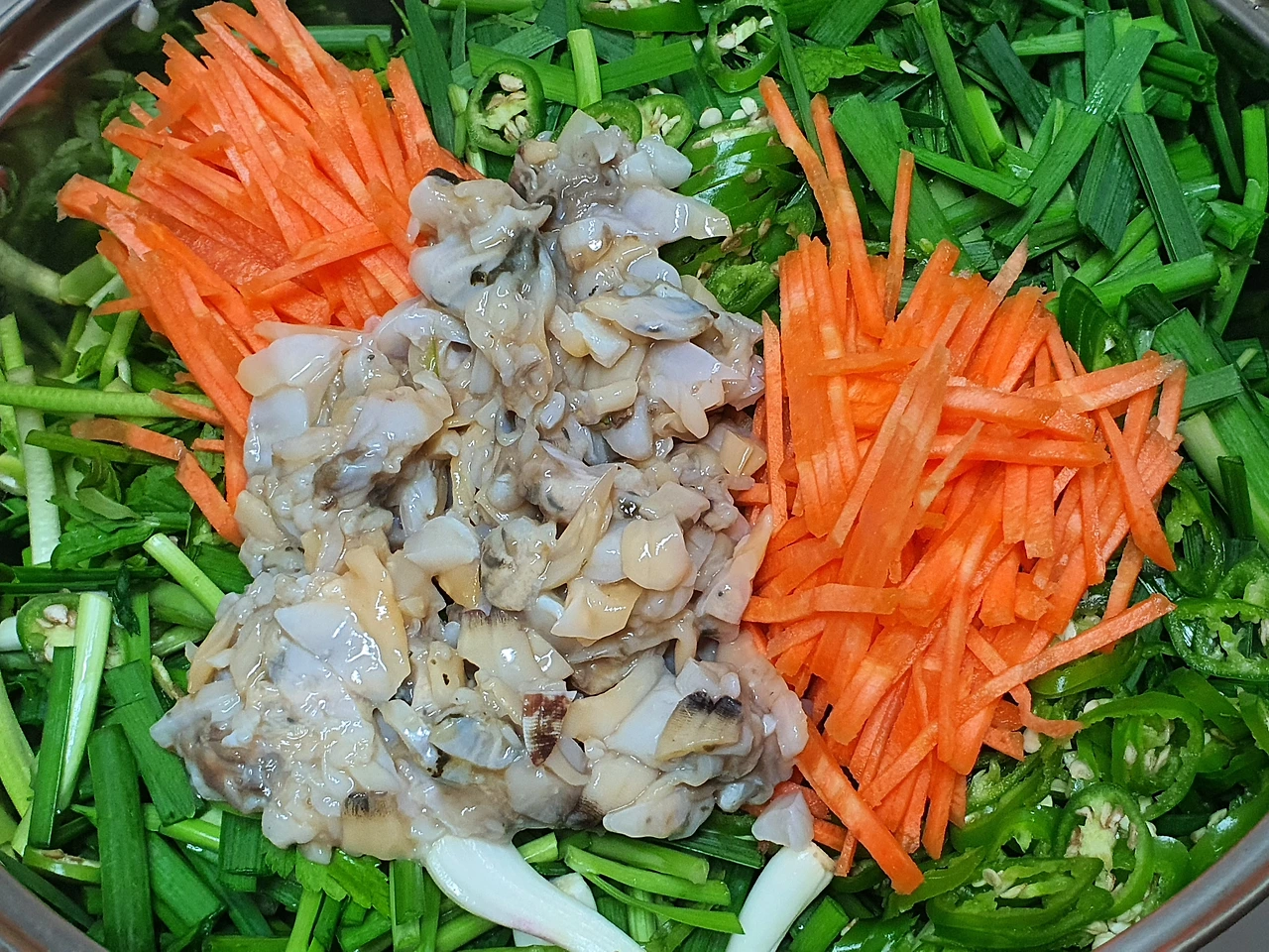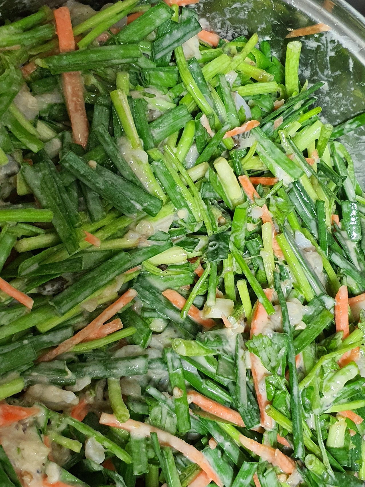 요즘 핫하다는 상큼한 미나리를 섞어서 만들면 향긋한 향내와 더불어 미나리의 효능인 해독 작용까지 있어서 좋을 것 같다.