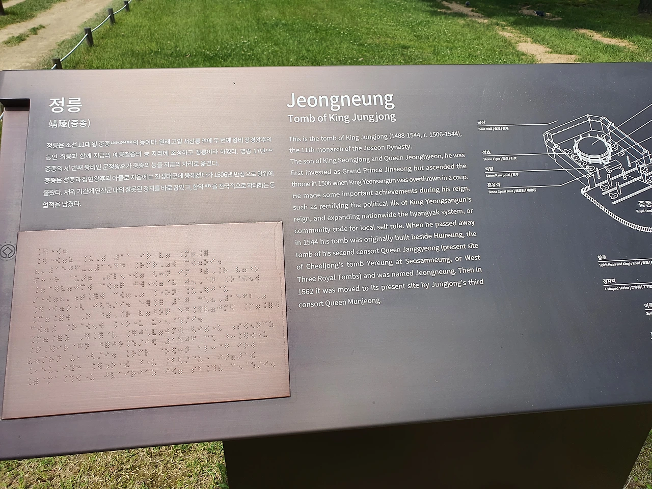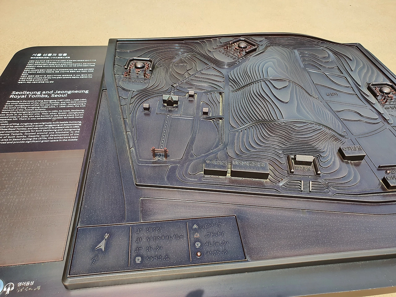 2009년 6월 30일에 유네스코 세계유산으로 등재된 선정릉은 앞이 보이지 않은 분들을 위해 점자식 능 설명과 배치도를 점자판을 설치한 것을 볼 수 있다.