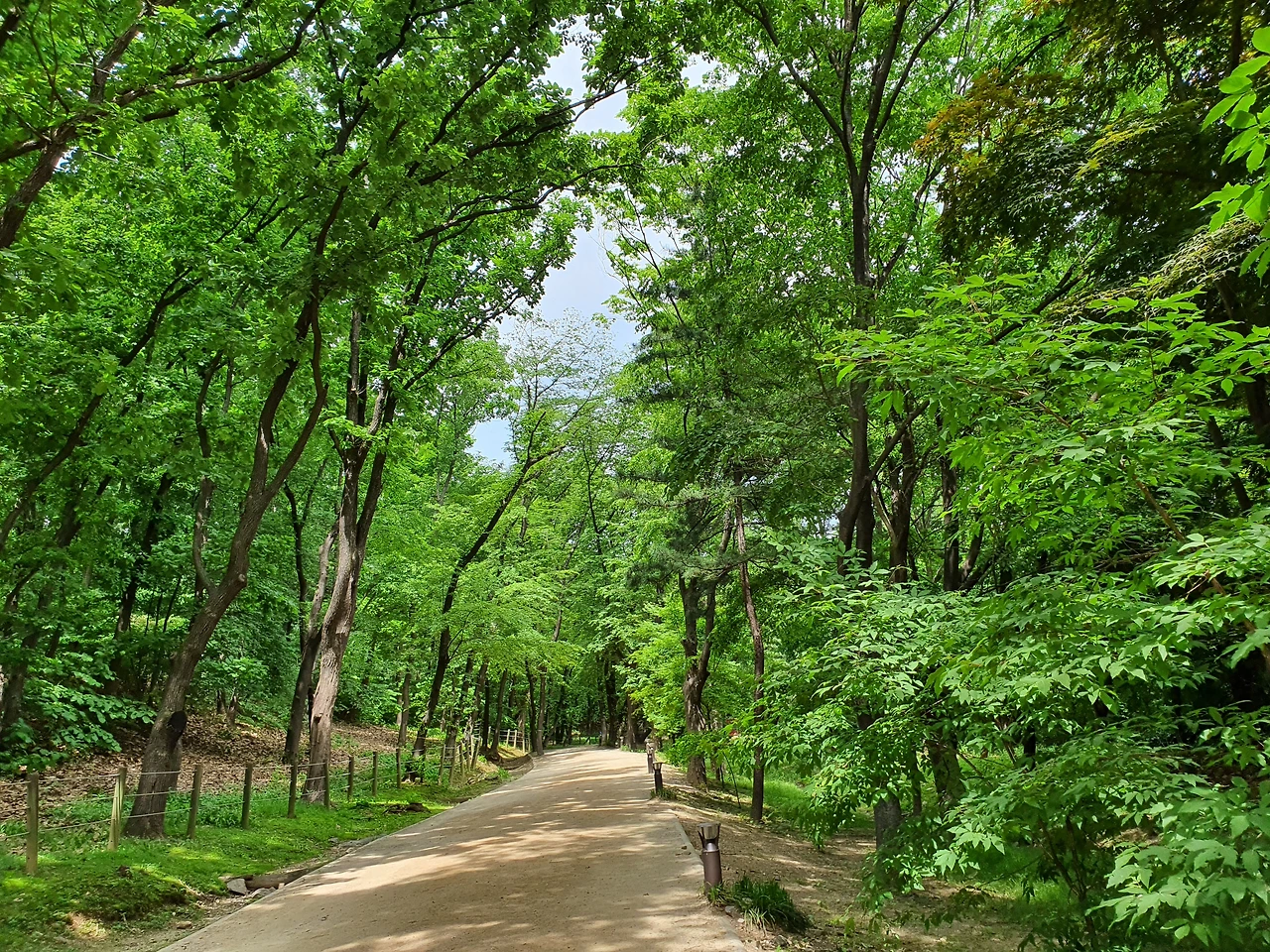 신록이 무성한 숲에 아름다운 새소리까지 들리니 금상첨화의 왕데이트 코스이기도 하며 운동의 장소로 손색이 없다. 어떤 여성은 정릉 앞 홍살문에서 기념비 있는 데까지 사람들 시선은 개념치 않고 왕복 걷기를 하고 있었다.
