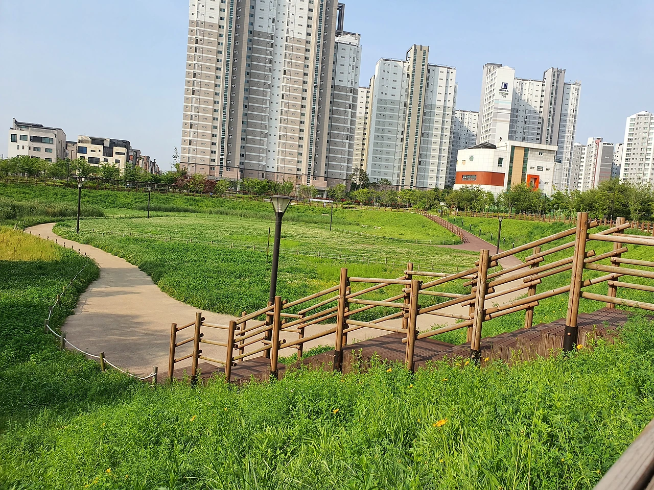 앞으로 더 진행하면 이케아와 이신의 선생 기념관이 있는 곳으로 연결이 되기 때문에 그쪽으로는 단(壇) 같은 것은 보이지 않아 선형공원으로 올라서서 수변공원 방향으로 걸으며 내 눈은 빠르게 고개를 좌우로 돌려본다.