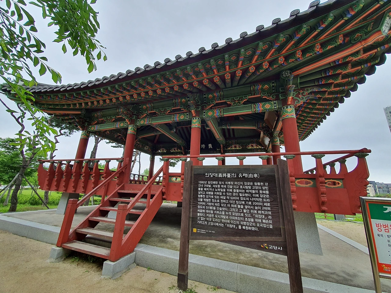 누각 가까이 가니 의장대(義將臺)라는 현판이 걸려 있고 의장대 유래에 대해 적은 표지판이 있는 것을 발견한다. 의장대 유래는 다음과 같다.
