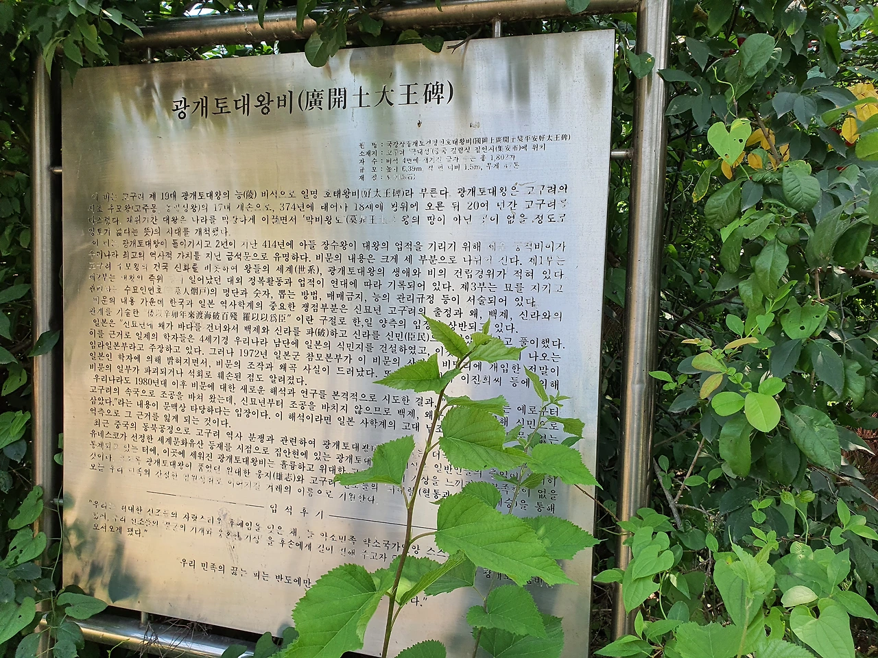 식당 사장님이 원래는 농협대학교 입구 원흥역과 가까운 곳에서 국숫집을 했단다. 국숫집을 해서 돈을 번 뒤에 이곳으로 자리를 옮겨 문화재 버금가는 집을 짓고, 만주 지안(集安) 시 퉁거우(通溝)에 있는, 고구려 광개토 대왕의 비석, 한반도에서 가장 큰 비석을 집안(集安) 현지에 있는 바위를 깎아서 그 지역에서 활동하고 있는 석수들의 힘을 빌려 탁본을 하고 비문을 새긴 다음에 우리나라로 운반해왔다고 말씀을 하시는 것이다.