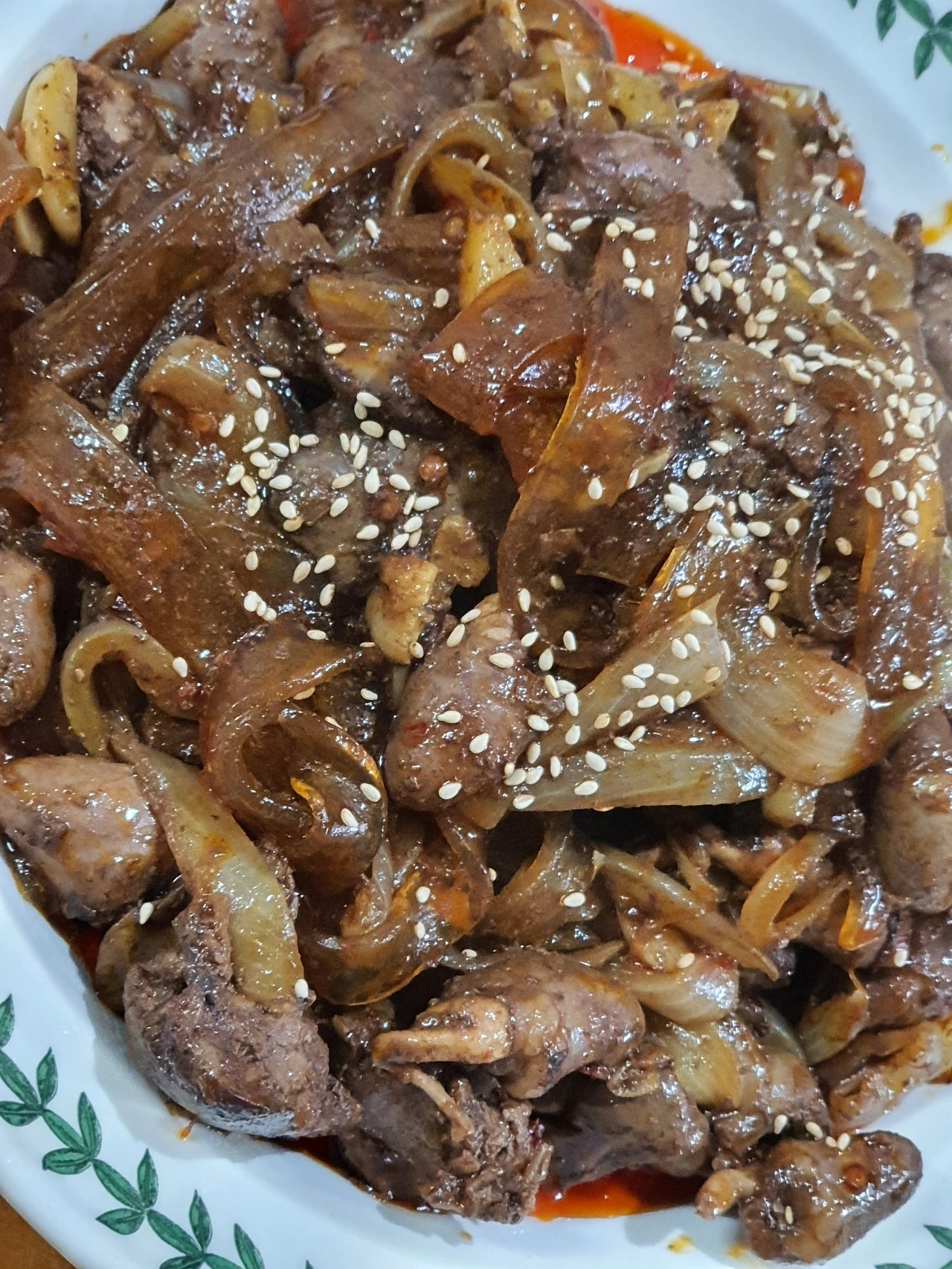 닭 간과 염통 볶음입니다.