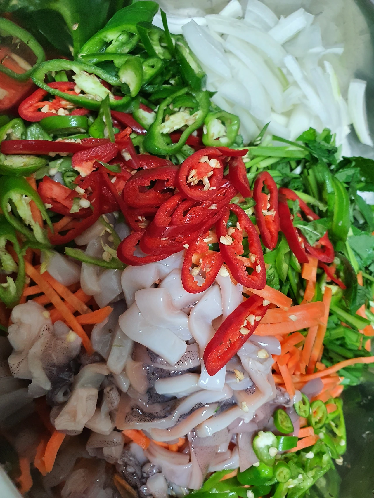 부산에서 올라오자마자 오징어와 바지락 조갯살을 넣어 부침개를 만들어 셋이서 앉은자리에서 몇 장을 먹었는지 모른다. 뜨거울 때 먹는 맛이란 그런 것 같다. 딸과 사위는 오랜만에 방앗잎 들어 간 부침개를 먹으며 아스라한 향수가 달래진 것 같은 표정이 되었다. 둘 다 부산이 고향이다 보니 가끔 생각이 나도 만들어 먹지 못했던 음식이라서 더욱 간절히 생각나지 않았을까 하는 생각이 든다.