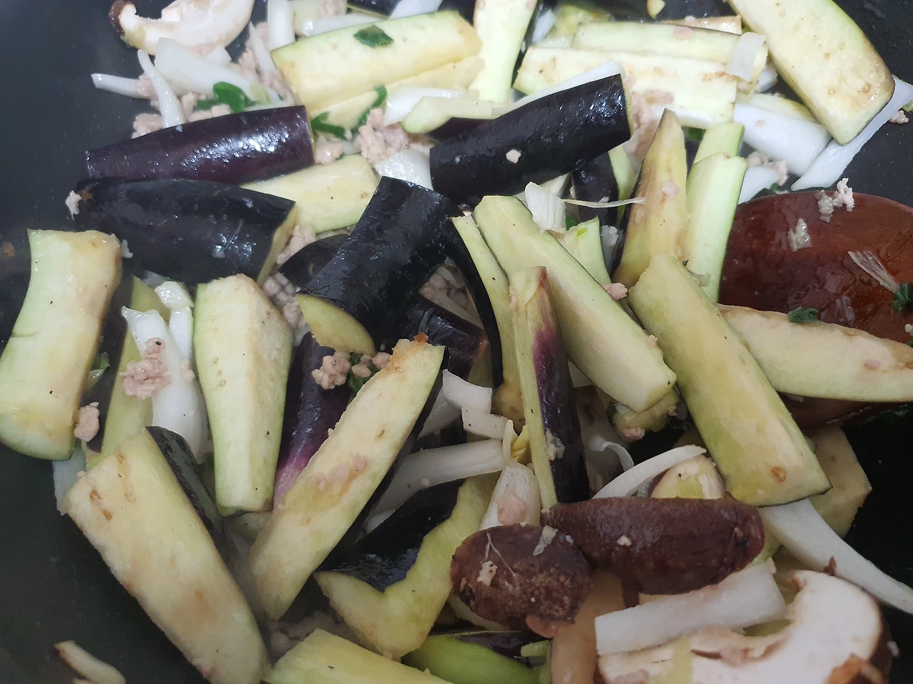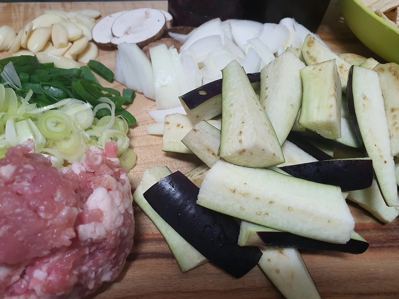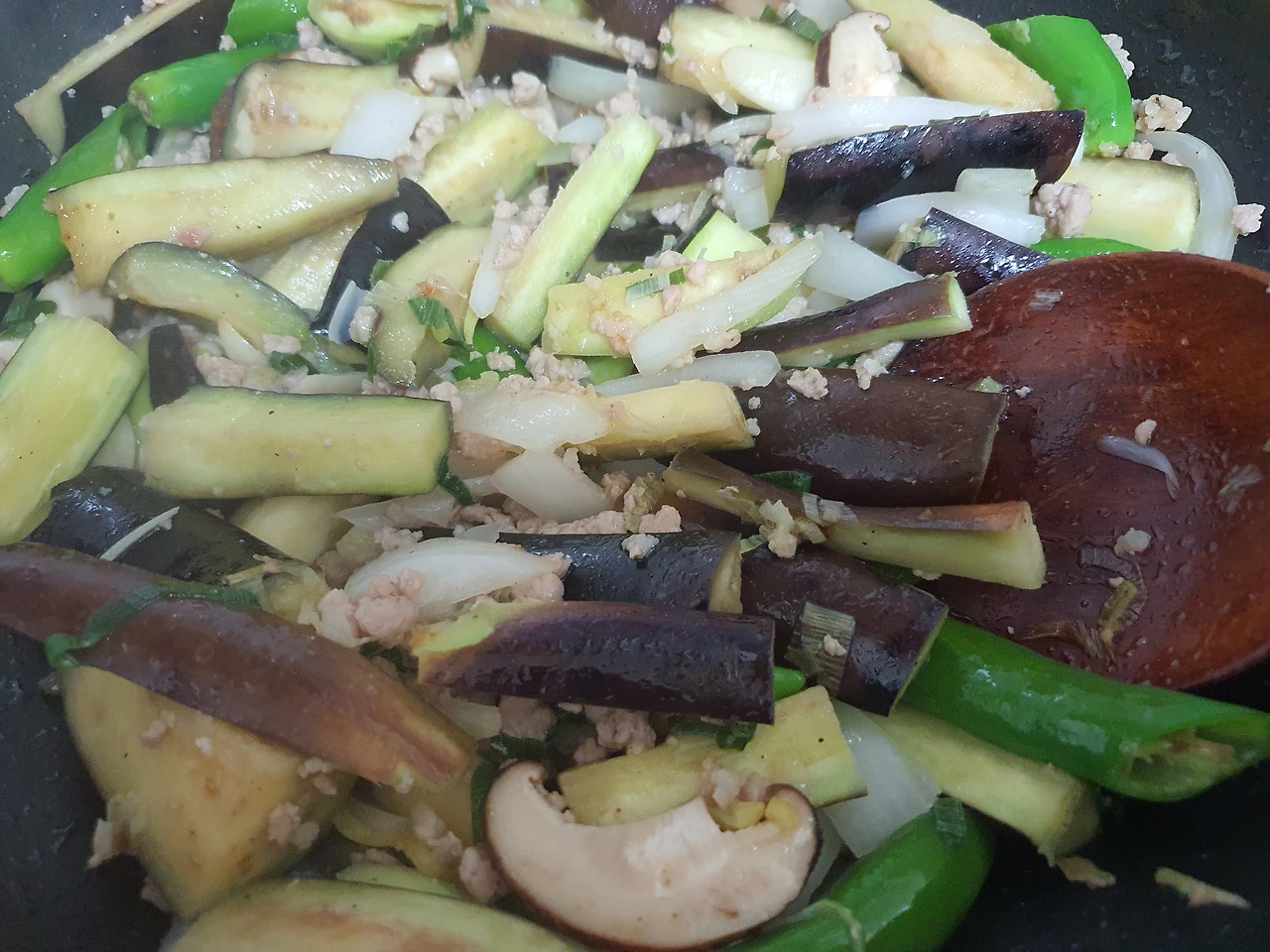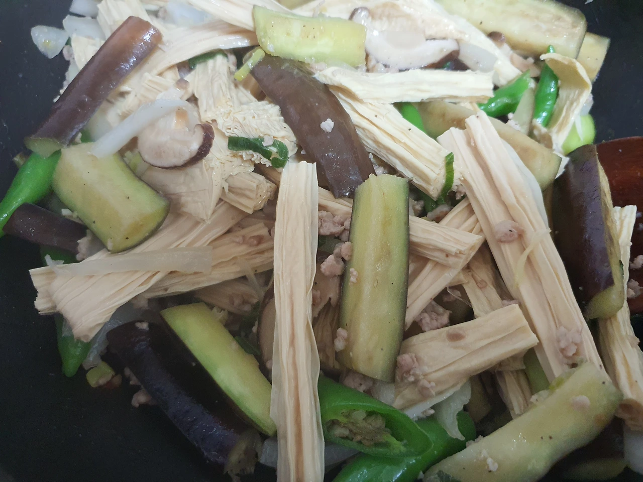점심 준비를 하며 가지와 푸조를 메인으로 하면서 냉장고에 있는 함께 때려 넣어 볶을 수 있는 야채들을 꺼내