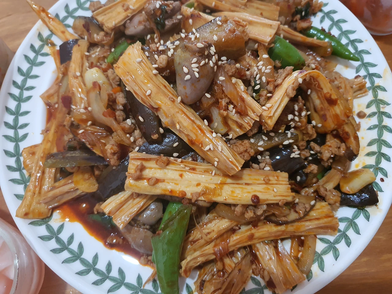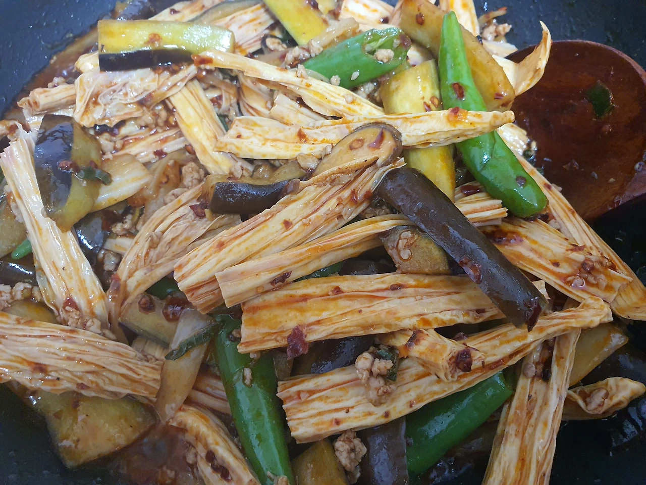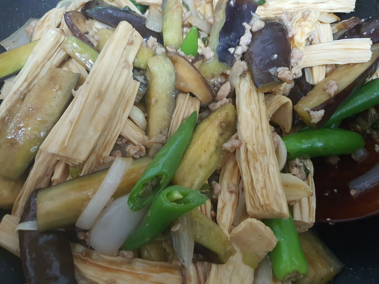 지난주에 지하철역 주변에 할머니들이 바닥에 펼쳐 놓은 가지를 사다 가지 요리했더니 푸조도 넣으면 맛있겠다고 하더라고요. 그래서 오늘은 얻어 온 풋고추도 듬뿍 넣습니다. 풋고추도 이맘때 끝물이라 어린 고추 조림하면 맛있거든요. 지난주에 가지 살 때 함께 사 온 풋고추 돼지고기랑 조림했는데 좋았거든요. 다들 배고파서 사진은 못 남기고 바쁘게 먹었어요. ㅋㅋㅋ~