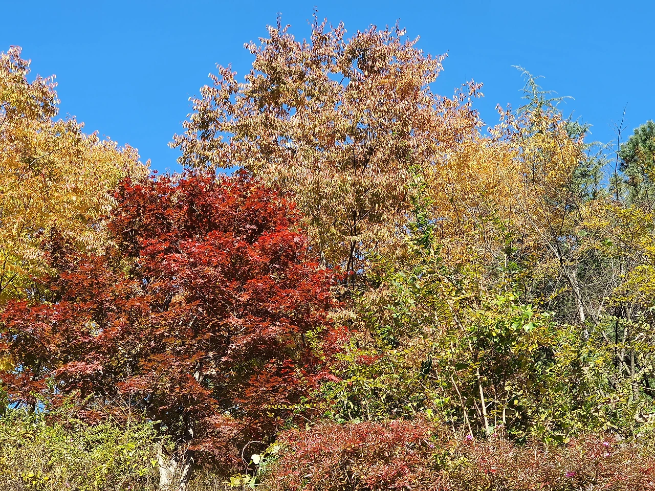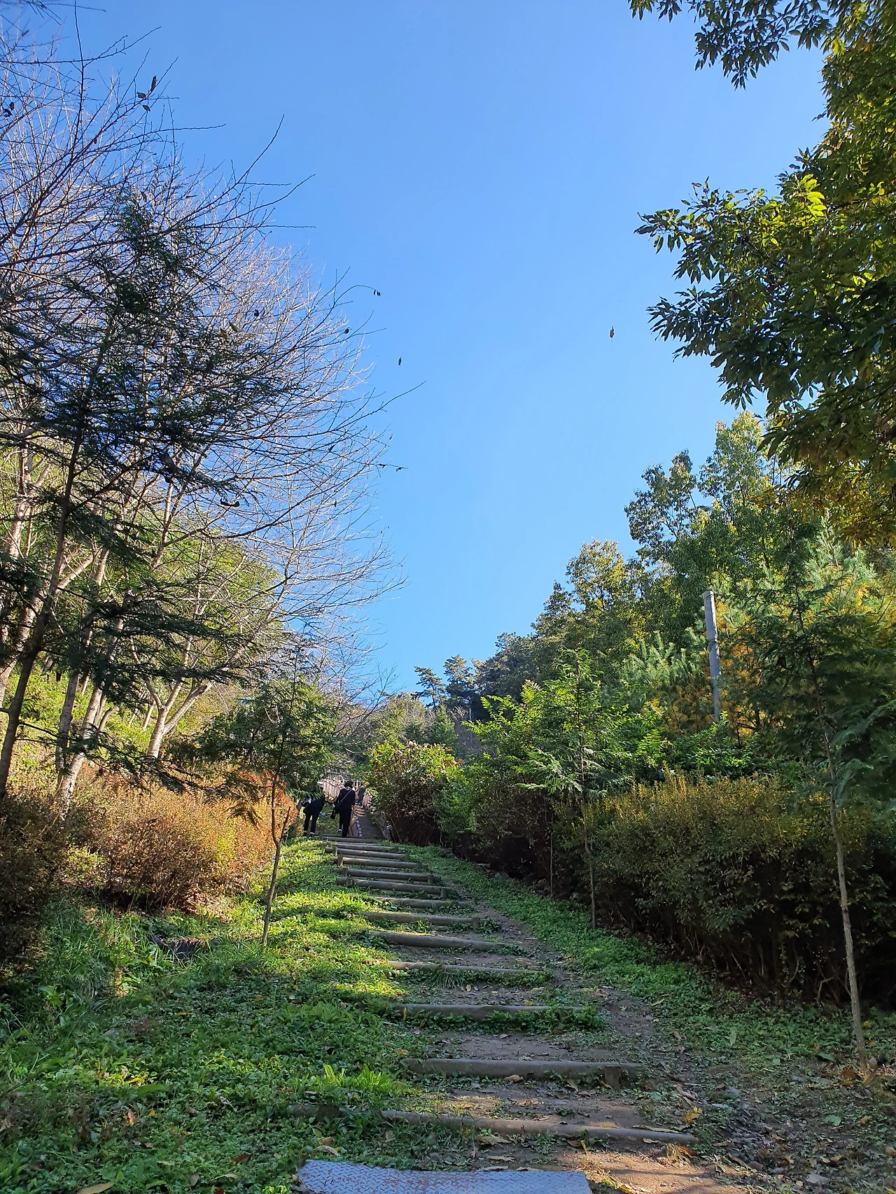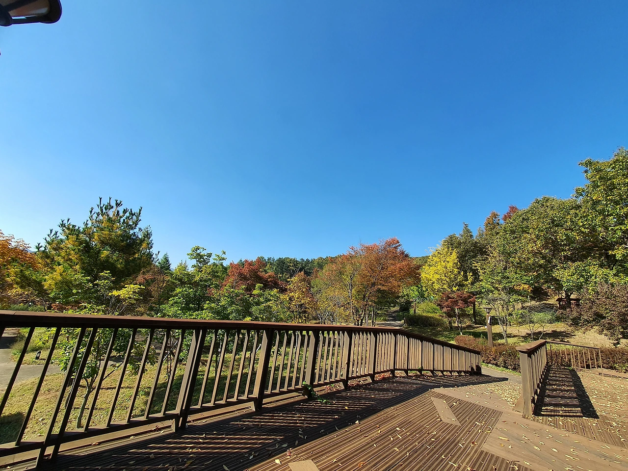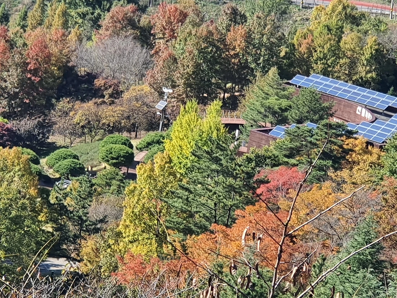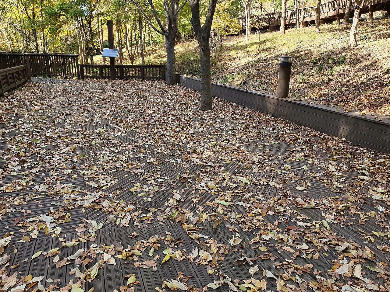낙엽 데크길을 걸어 보기도 하며 산골짜기 다람쥐 두 마리가 놀러 나왔다가 우리를 보고 다시 숨어 들어가는 모습이 귀엽다. 산속에서 만나는 다람쥐들이 행복해 보인다. 우리도 가을산에 올라 가을을 삼삼하게 타며 즐거운 시간을 보내는 순간이 행복임을 깨닫는다.