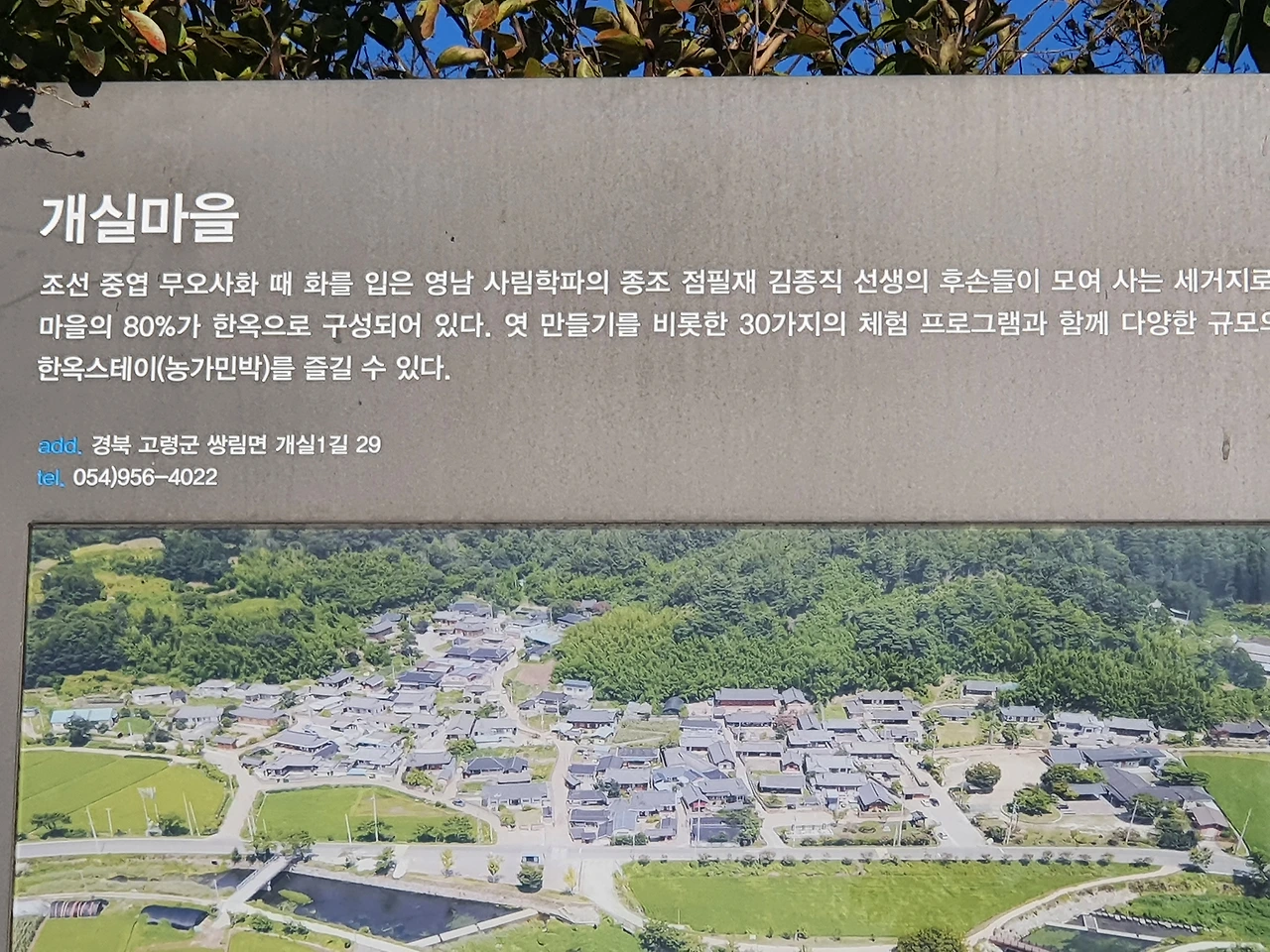 개실은 조선 중엽 무오사화 때 화를 입은 영남사림 학파의 종조 점필재 김종직 선생 후손의 새거지로서 본래 고령군 하동면 지역이었다.