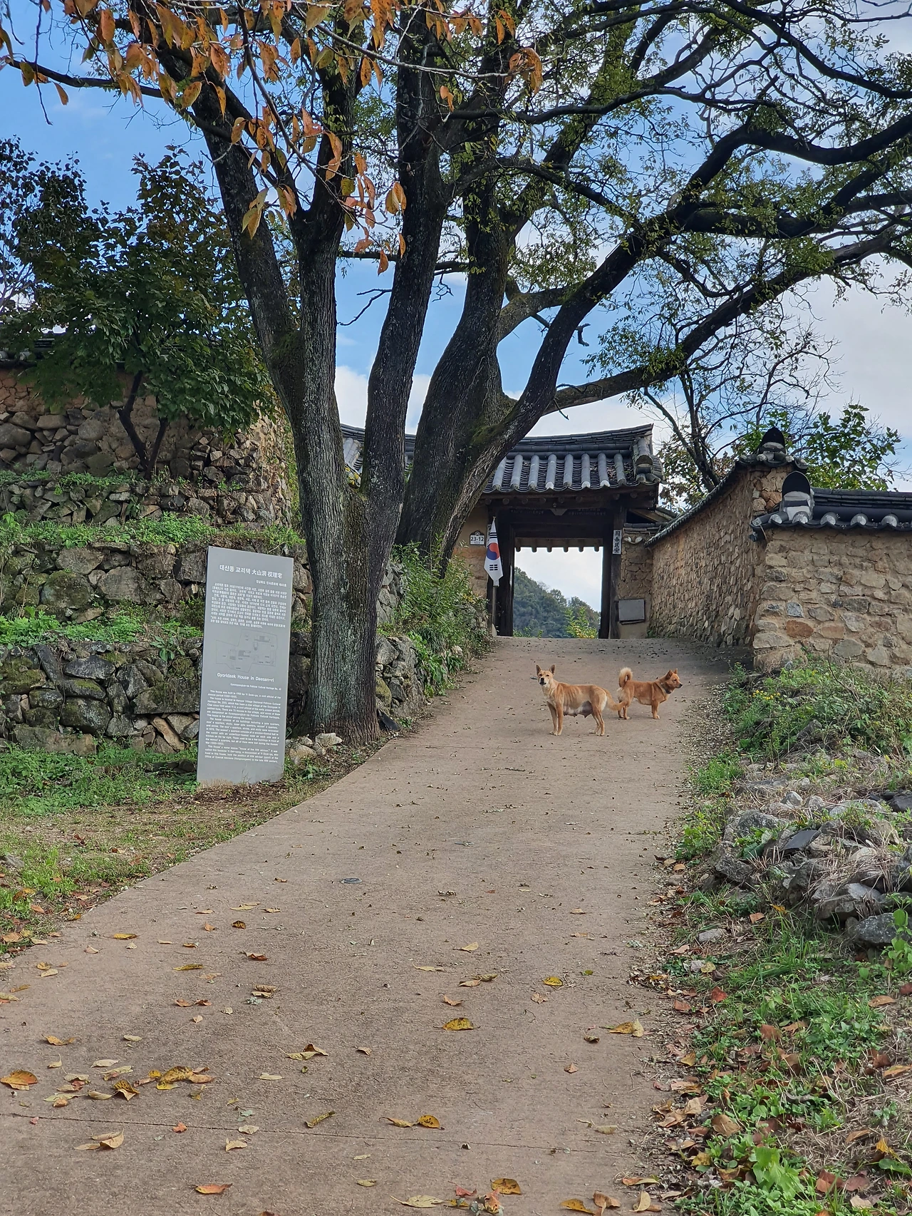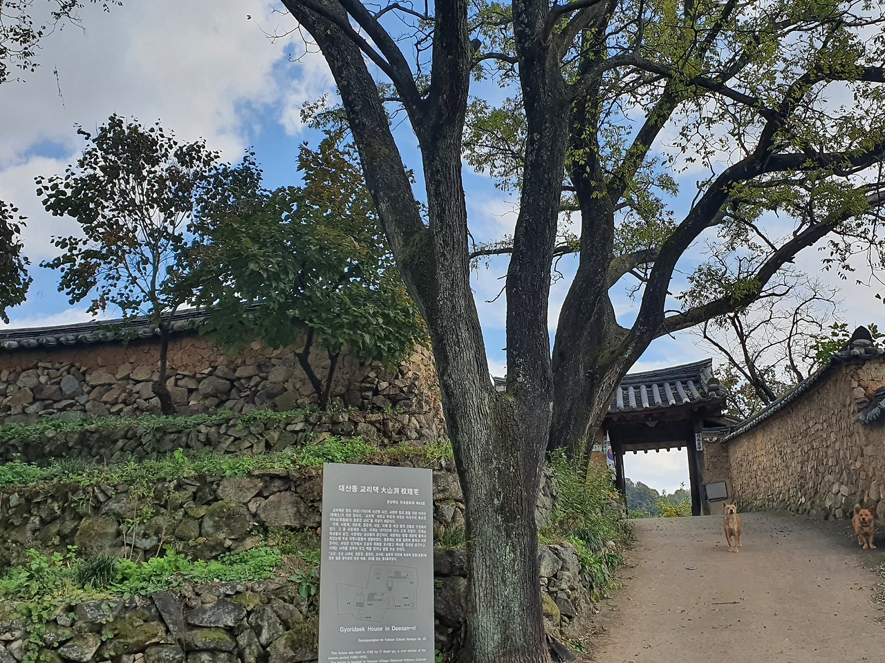 마을이 너무 예뻐서 찬찬히 둘러보게 되는데 개들은 낯선 이를 보자 주인집을 지키기 위해 조용한 마을이 울리도록 짖는다. 그래도 정겨운 것은 짖으며 자신의 집 대문 앞으로 들어가면 짖고, 그냥 지나가는 것 같으면 빤히 바라보기만 하는 것이다.