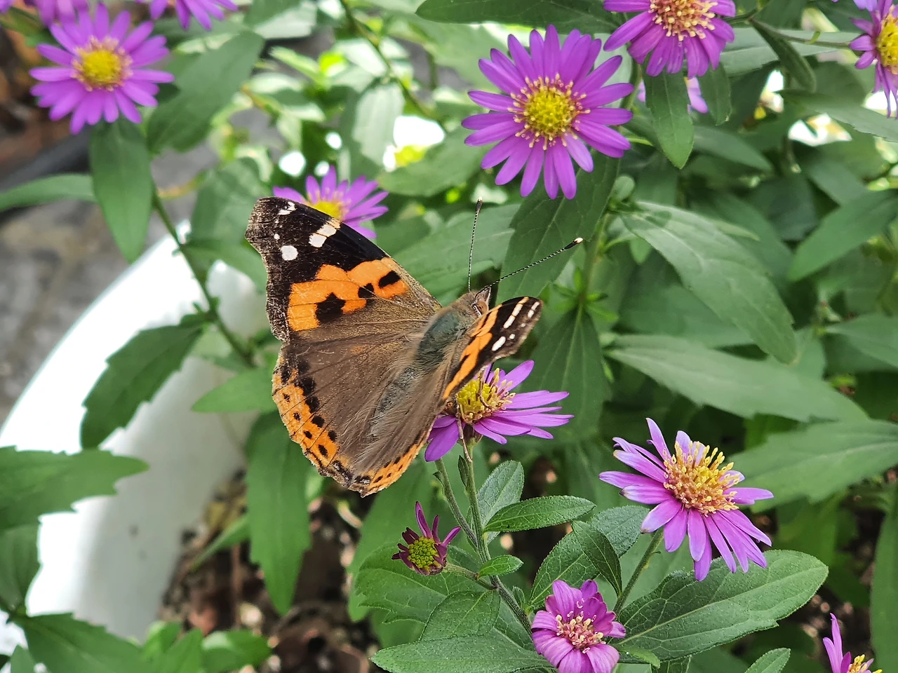 국화, 큰멋쟁이 나비.