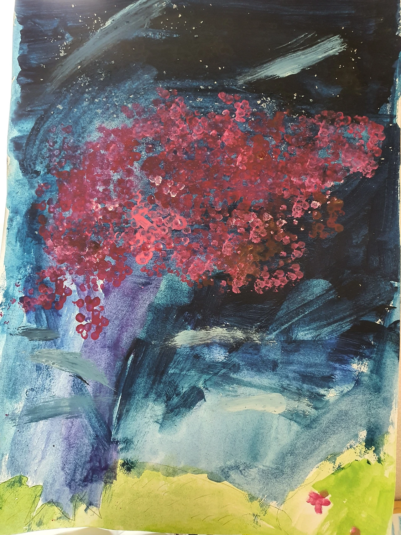 그림 뒷얘기; 하율이는 밤이라서 벚꽃이 제대로