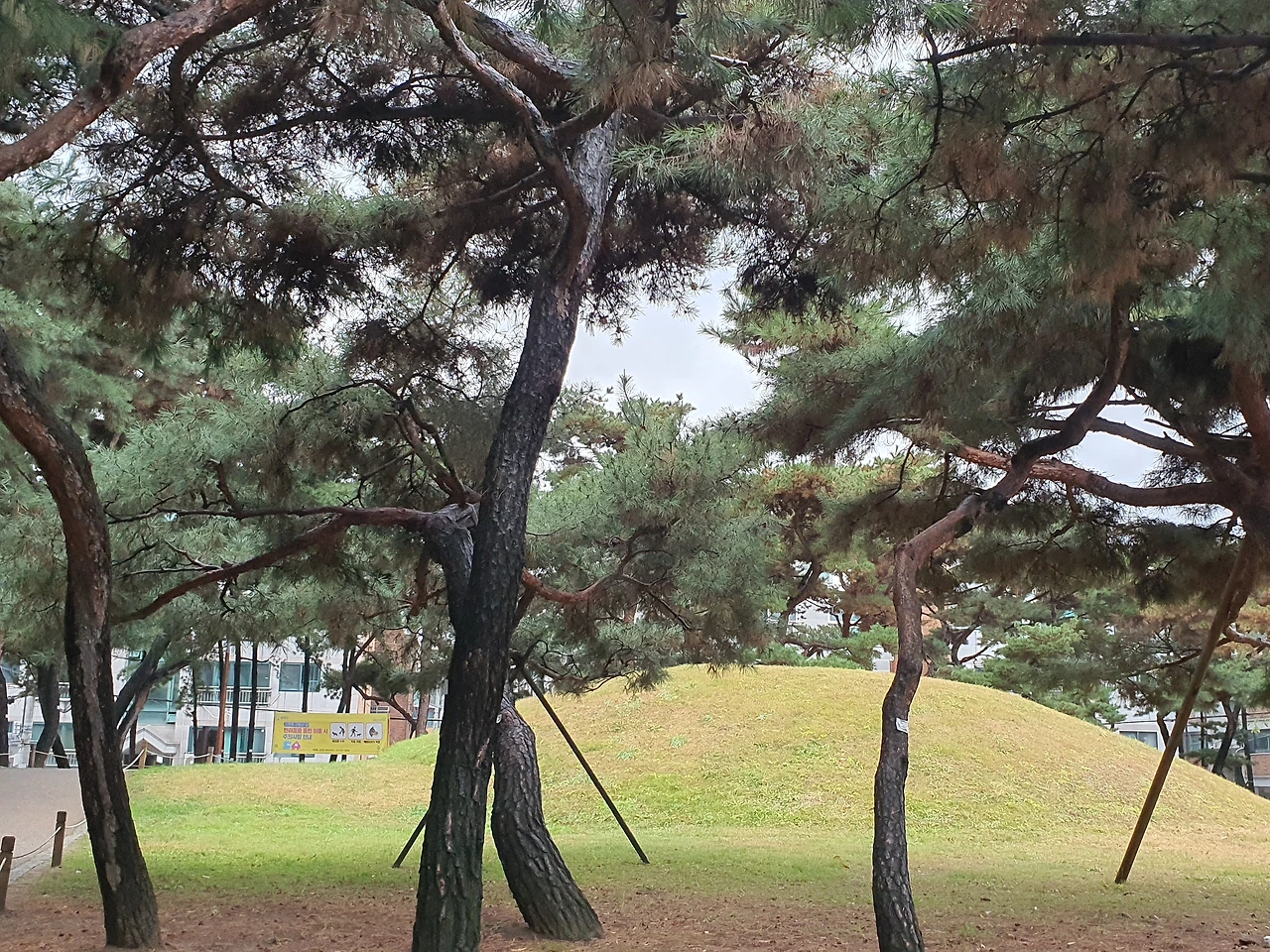 겨울비가 말끔히 먼지를 씻어 내려 그런지 고분들은 마치 세수를 한 듯 말간 얼굴로 시민들을 맞고 있다. 반려견을 데리고 걷는 사람, 간혹 젊은이들이 걷기 운동을 하는 것이 보이지만, 어르신들이 대부분이었고 집안에서의 답답함을 풀기라도 하는 듯이 할머니 몇 분은 의자에 박스를 펼쳐 놓고 앉아 이야기 꽃을 피우고 계신다.