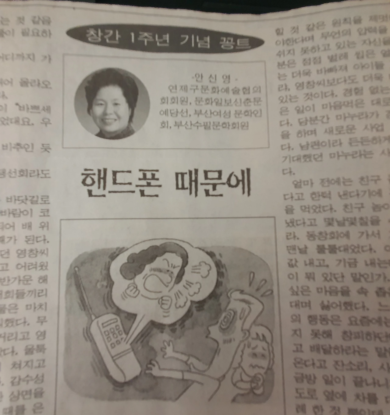 그 당시 모임 친구들과 바닷가로 회 먹으러 가는 길에 send 버튼 때문에 남편이 오해를 했다는 얘기를 듣고 반대로 써봤던 콩트였어요. (1997년 7월 부산광역시 연제구 연제 신문에 실렸던 글입니다.)