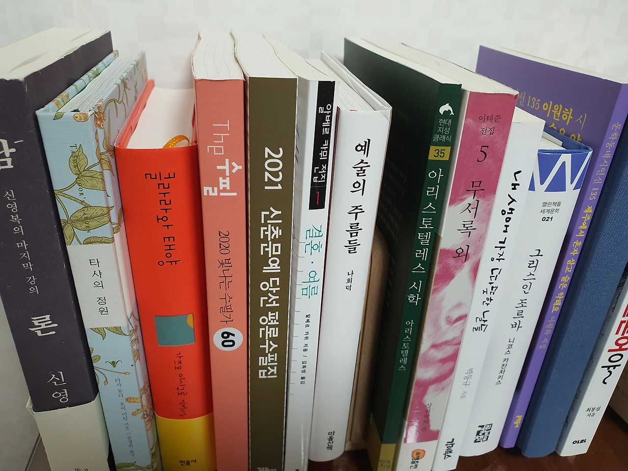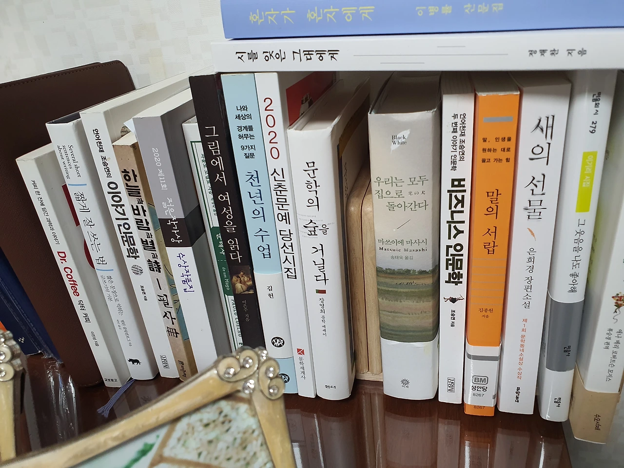 펴보지 못한 책들이 무심하게 나를 바라보네.