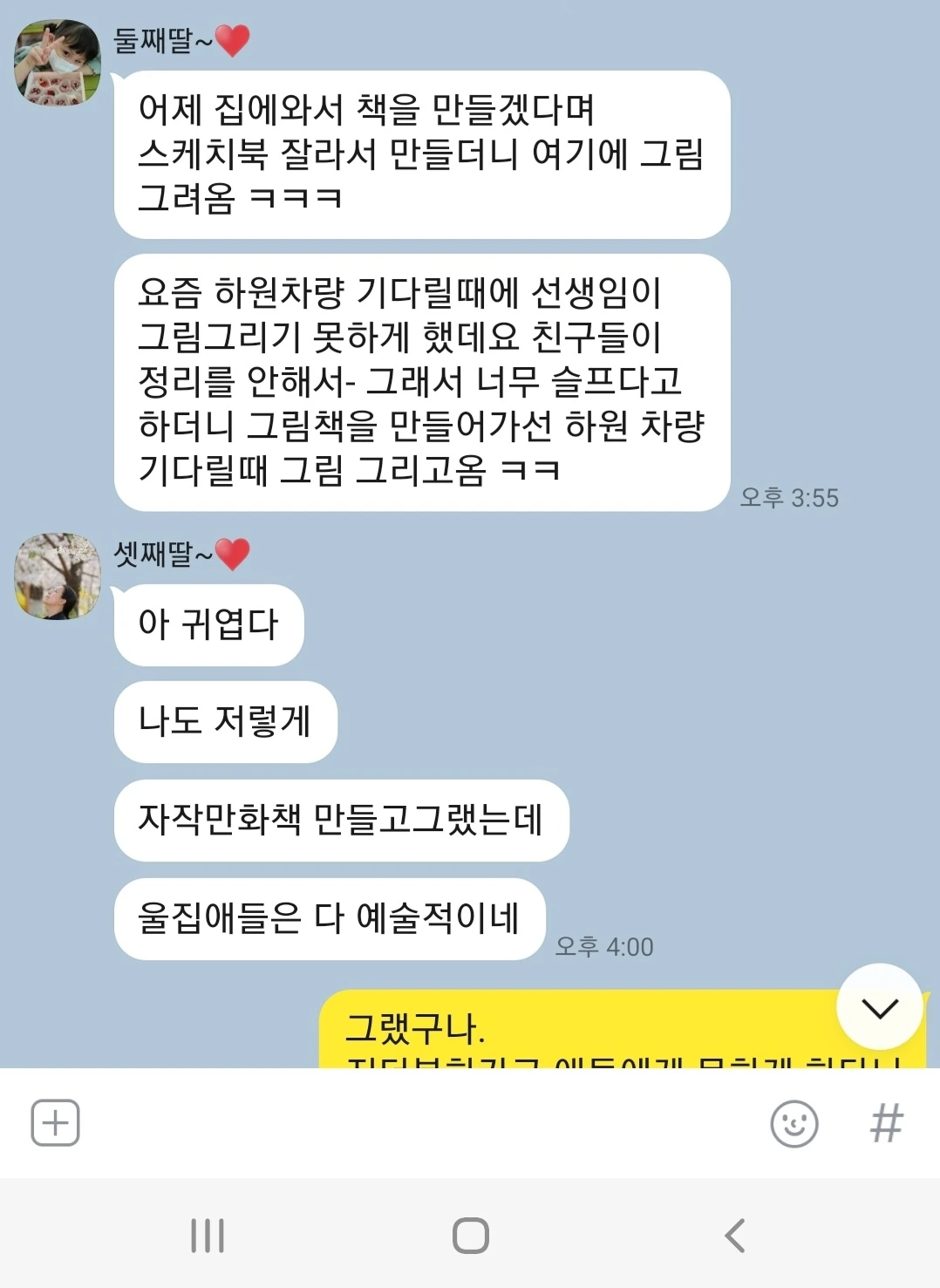 막내의 말대로 이모, 조카 모두 예술적인가 봐요.