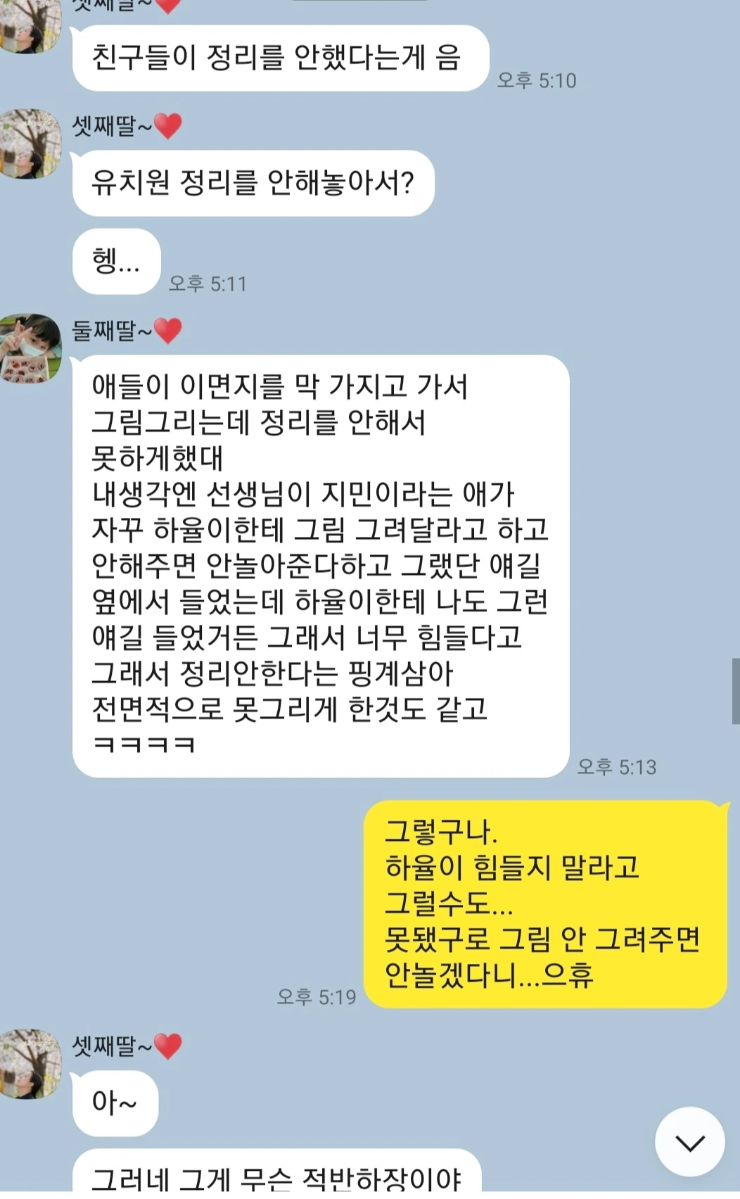 하율이 걱정을 덜었어요.