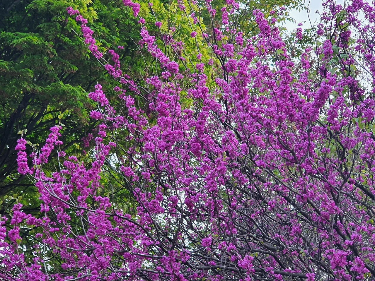 박태기나무 꽃도 화사한 진분홍 옷을 입고