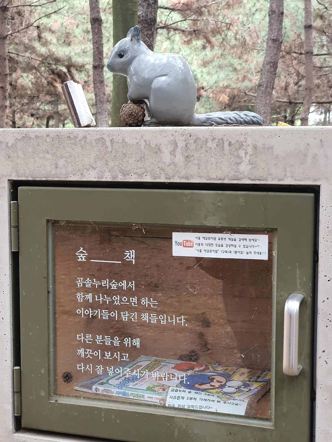 숲 속 도서관이라며 책장 위에 청설모 인형과 나침반을 올려놓아 귀여운 모습이 눈길을 사로잡는다.