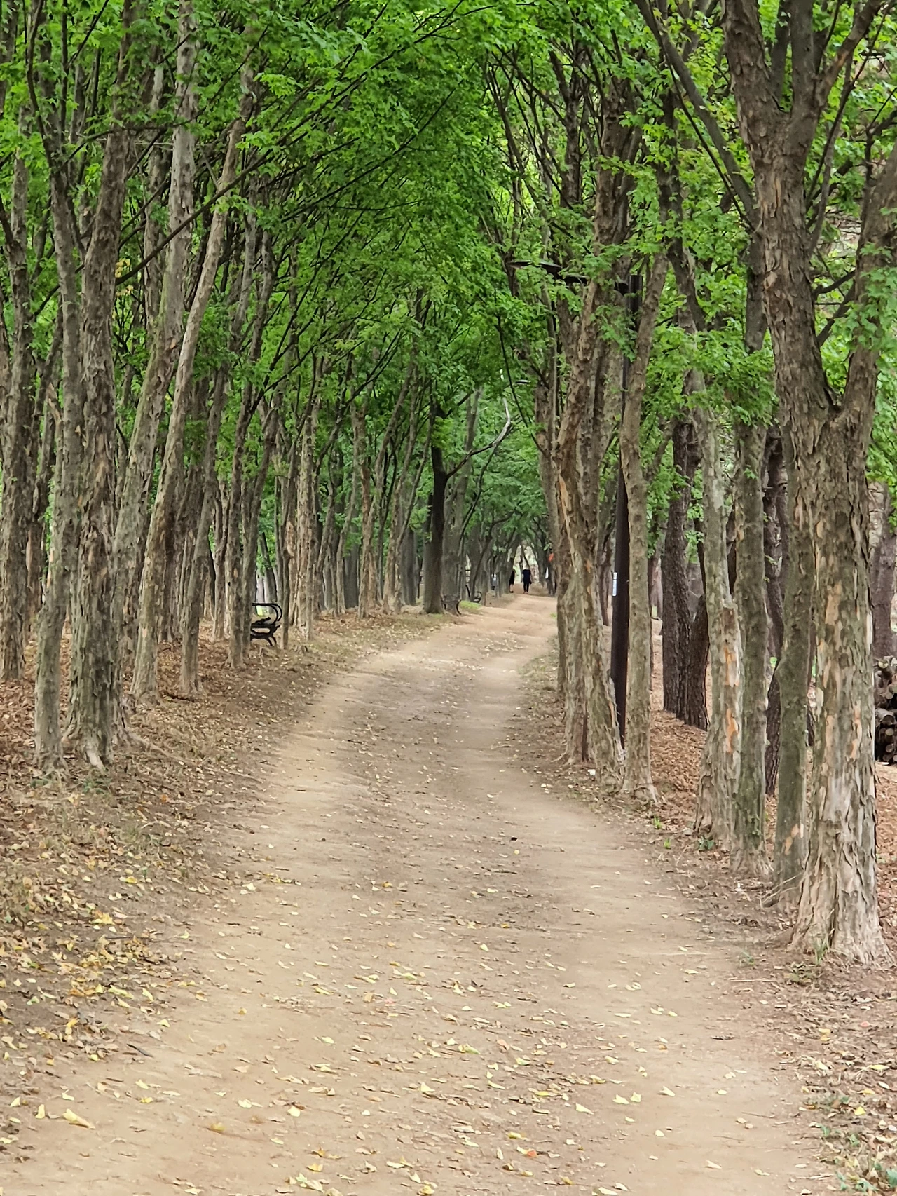 왜 곰솔 숲인가 했더니 누리길 양옆으로 소나무가 많다. 그런데 비가 흡족하게 내리지 않아서인지 늘 푸른 꼴이 못되고 많이 말라 삭정이가 태반을 이루고 있다. 사이사이에 아까시나무와 닮은 회화나무와 노란 꽃이 피기 시작하는 모감주나무도 많다. 왕복 5km가 조금 넘는데 시흥시에 있으며 오른쪽엔 반월공단이 자리하고 왼쪽으로는 아파트 단지가 빼곡하다. 하천의 물은 기름기가 뜨는 검은빛이라 물새도 한 마리 보이지 않아 안타깝다.