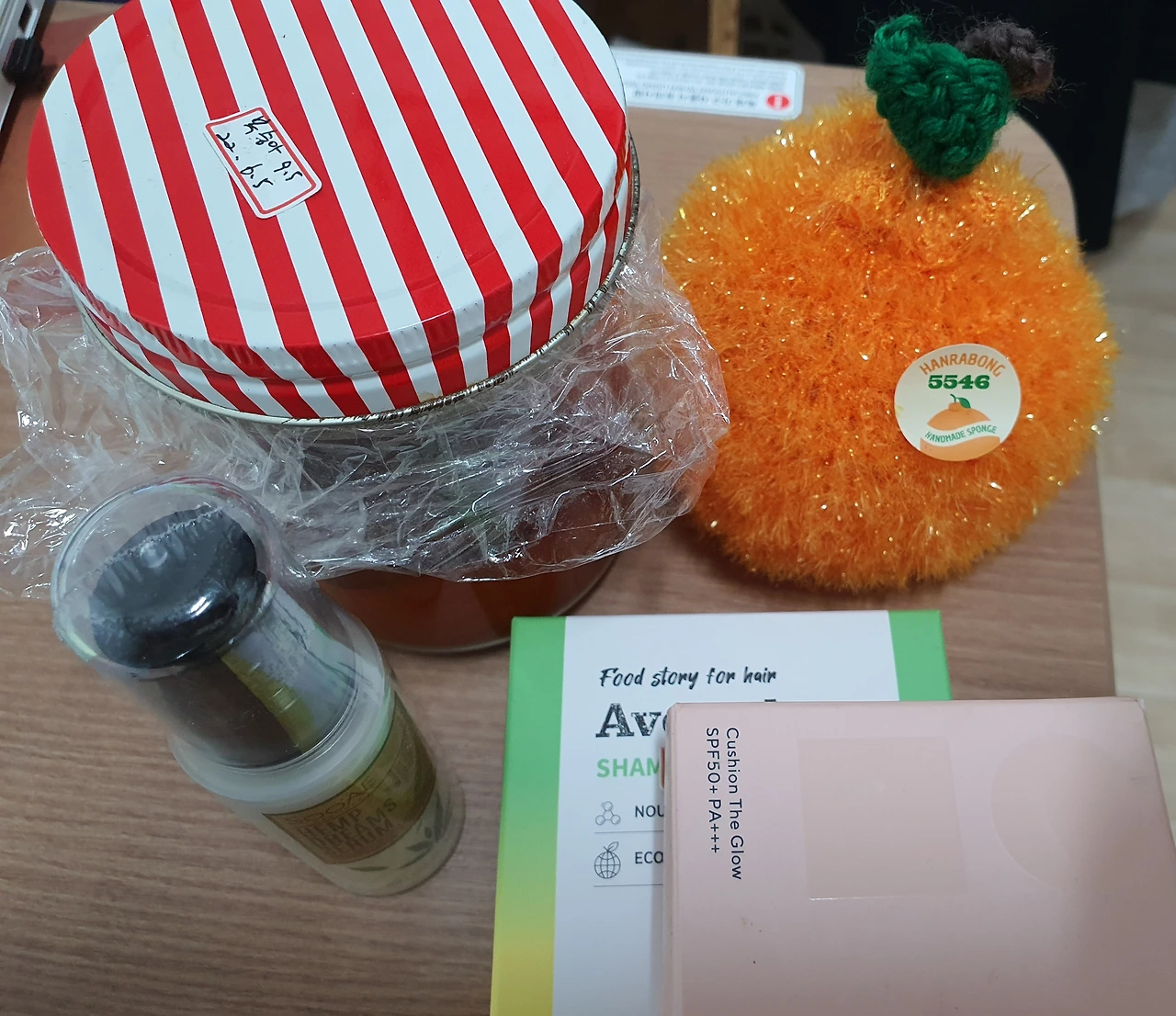 지난 2월에 만나고 4개월 만의 만남은 유쾌한 웃음과 수다로 풀어내기 시작한다.무거워서 많이 챙기지 못해 작가님 좋아하는 색깔의 보라색 원피스와 여인들에게 필수인 바디워시, 샴푸, 폼 클렌징으로 생일 선물을 증정한다. 후후. 주는 즐거움은 크다. 그런데 작가님도 만만치 않다. 아담한 쇼핑백을 건네주는데 개복숭아를 따서 담근 차와 화장품과 수세미가 들어있다. 복숭아차는 9월 6일에 거르라는 메모도 있다. 수세미는 너무 예뻐 구경만 하겠다고 했다.ㅎㅎㅎ~
