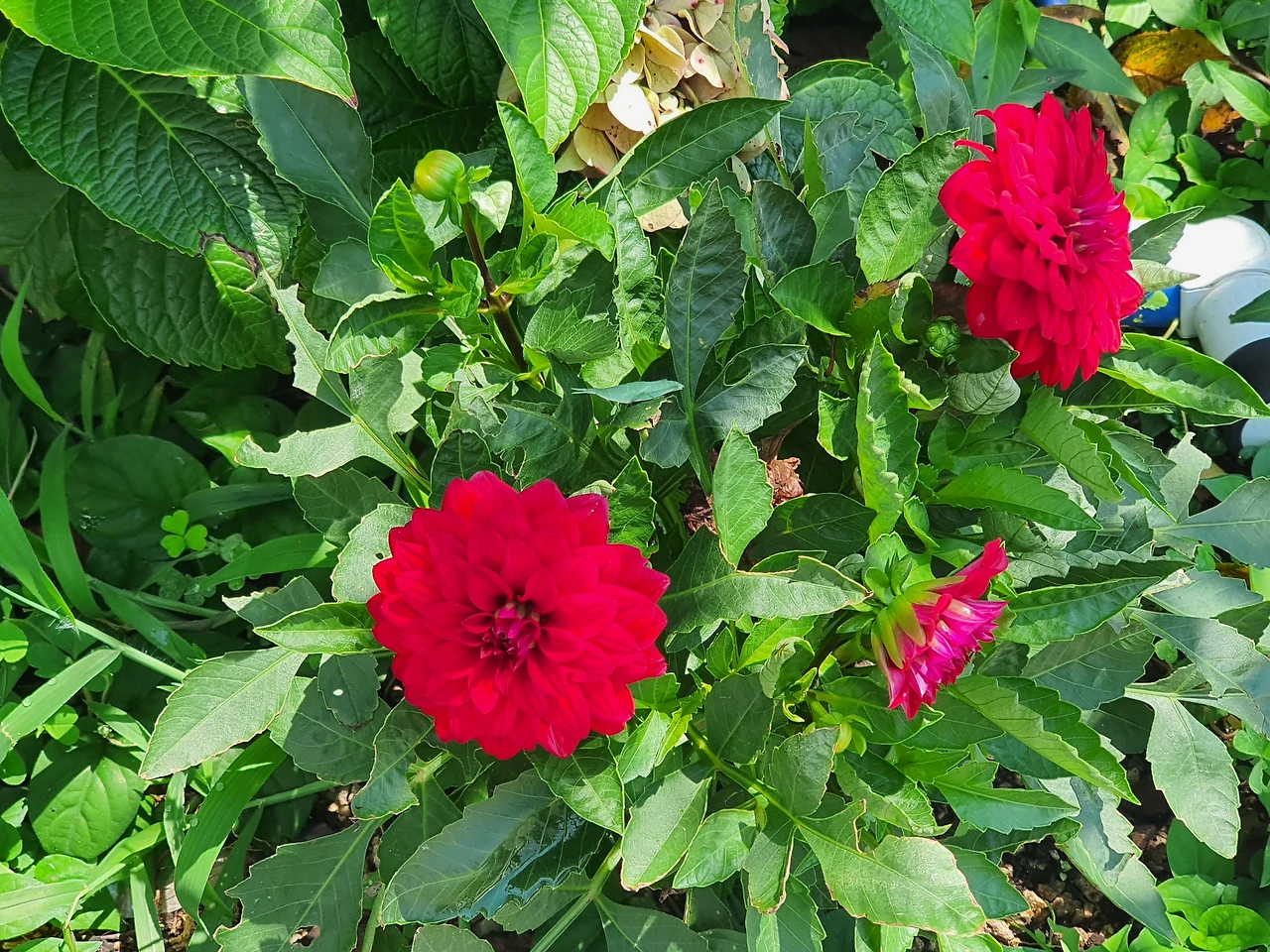 카페 입구의 화단에 핀 빨강 달리아가 유년의 기억을 부른다. 우린 한결같이 어렸을 때 많이 보던 꽃들이 사라지고 외국의 꽃과 개량종이 많이 나와 있는 시대에 살면서 옛날을 그리워하기도 한다.