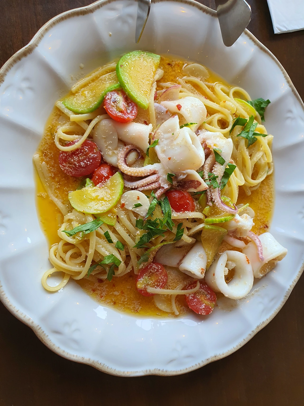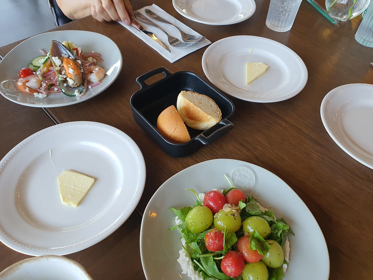 통창에 비치는 바다를 바라보며 먹는 스테이크도 입에 살살 녹아 맛있다. 먹고 싶던 파스타를 두 가지 다 맛보며 먹는 행복에 겨워 염치도 없이 먹는 일에 열중한다.