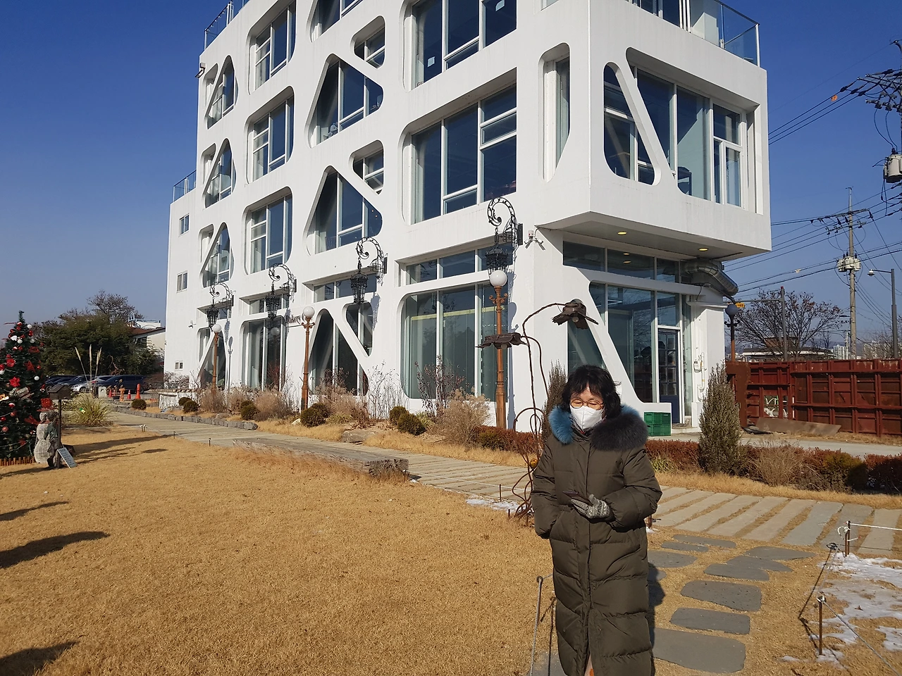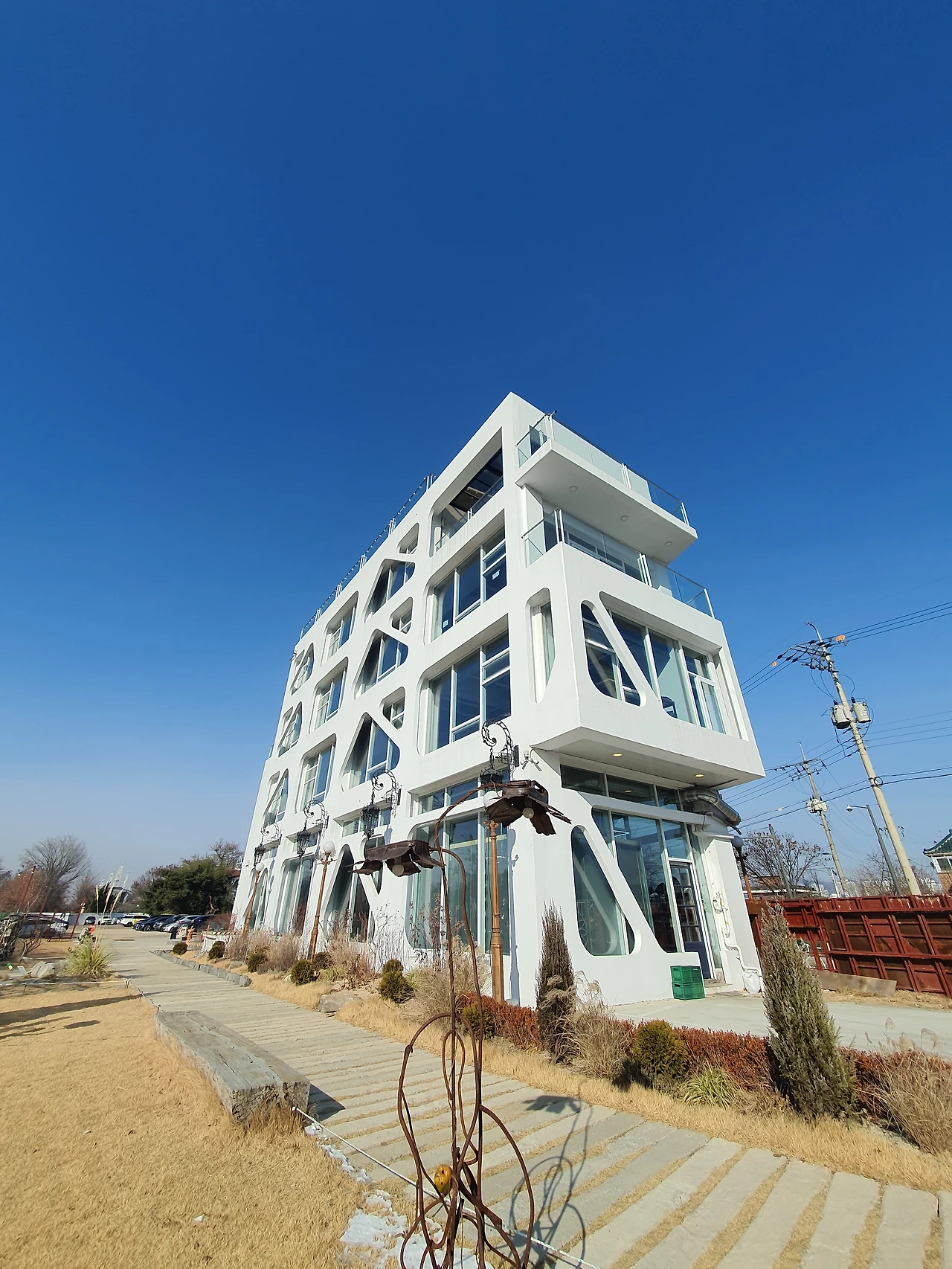두리번거리는 우리에게 <이옥진시인의 마을 제빵소> 현수막이 보였고 외관이 특이한 하얀 건물을 만난 것이다.