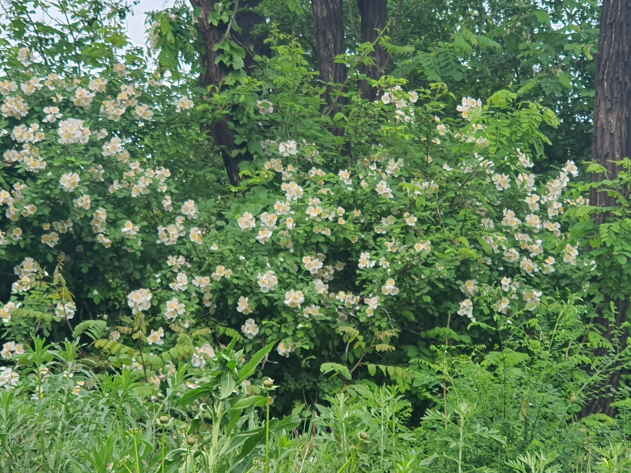 하얀 찔레꽃, 오랜만에 보는 때죽나무 꽃이 수많은 등불 밝히듯 피어 있어 반갑다.