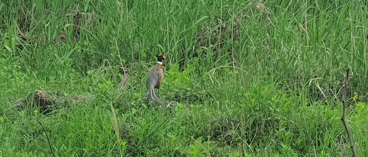 풀숲을 이리저리 둘러보며 장끼를 발견한다. 멀지만 최대한 줌을 당겨 사진을 찍어 본다.