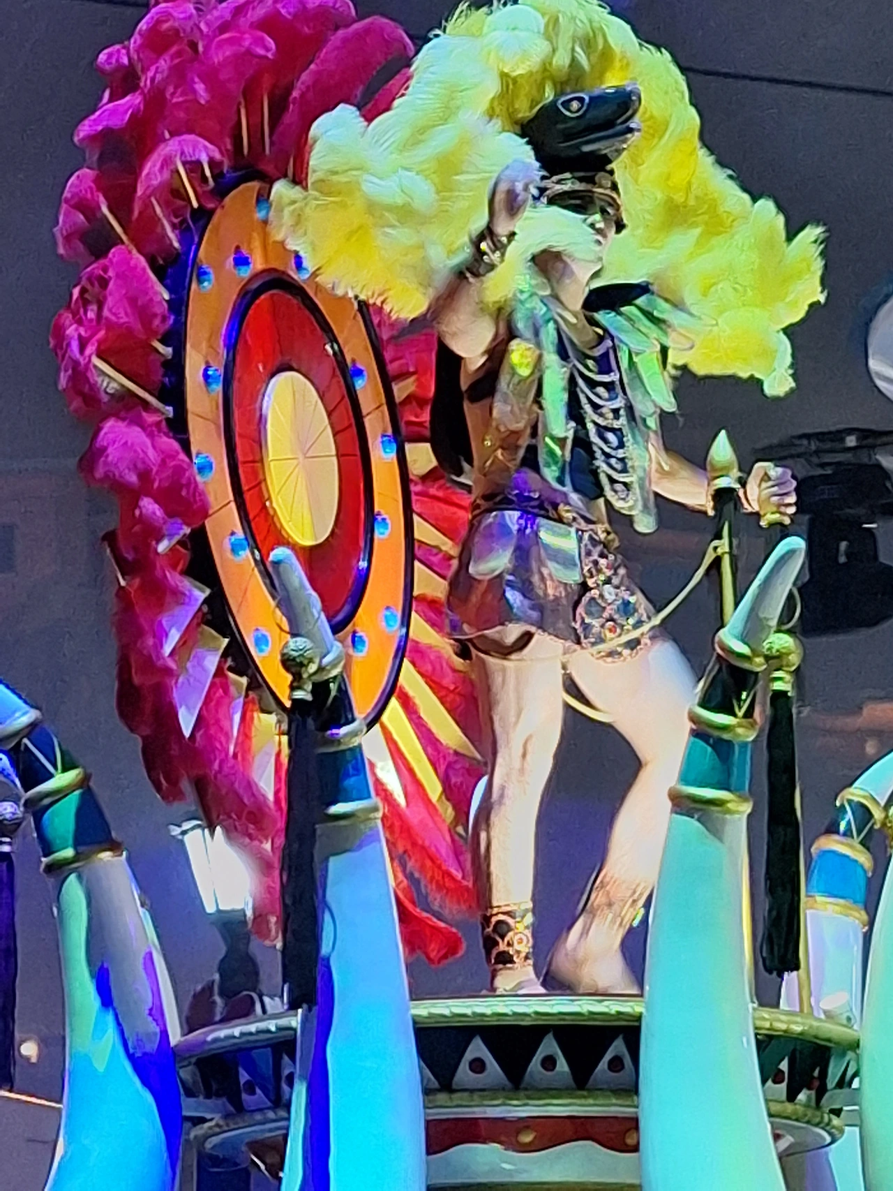 깃털 장식의 화려함과 보석으로 치장된