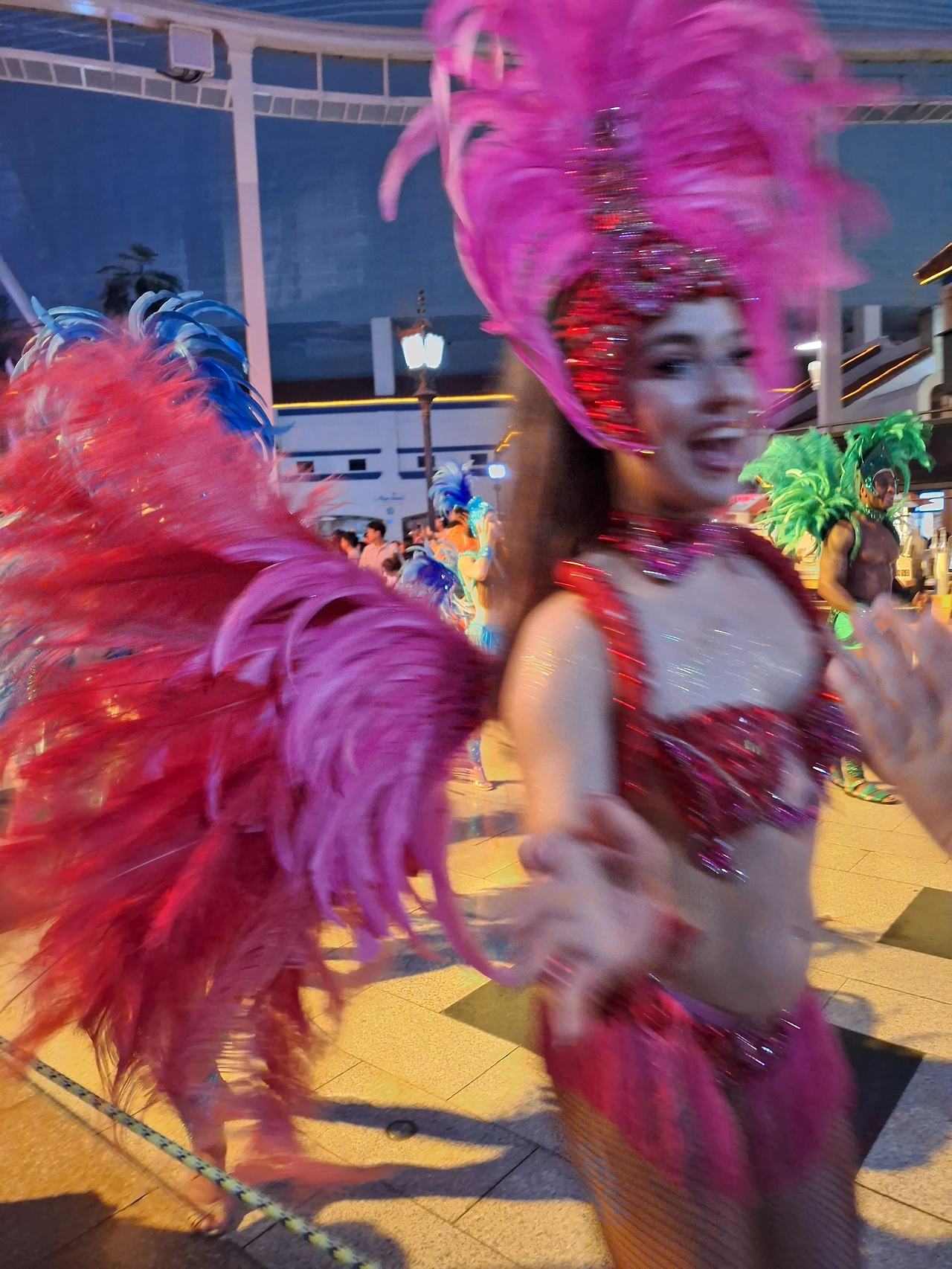 화려한 의상 차림인 댄서들의