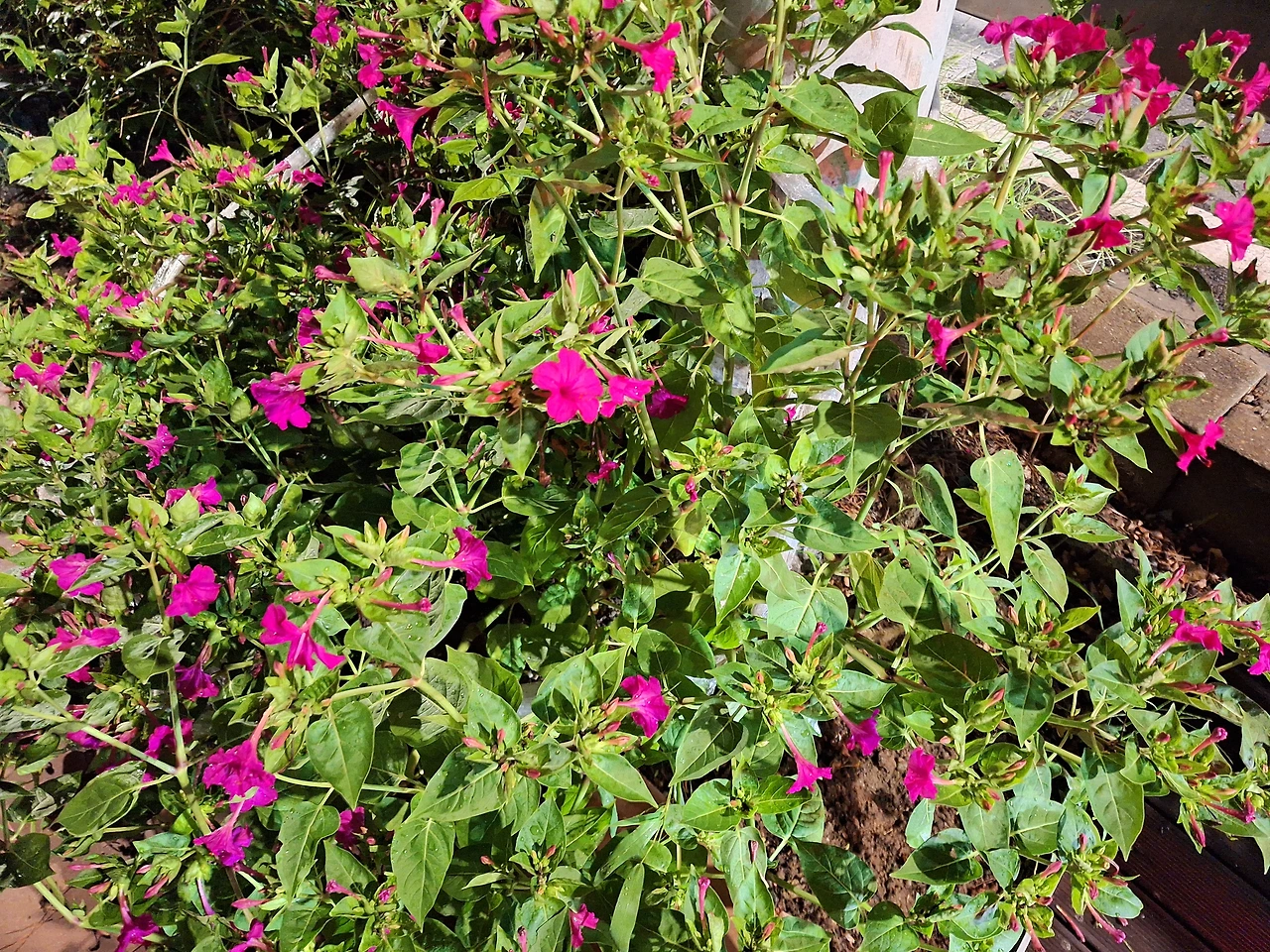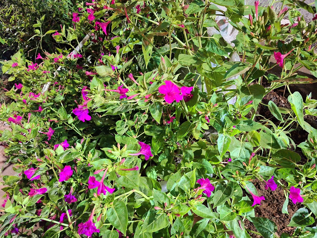 누군가의 부지런한 손길로 키 큰 해바라기 꽃이 가지런히 서 있고 그 옆엔 키 작은 봉선화가 꽃을 잔뜩 달고 서 있는 것이 보인다.